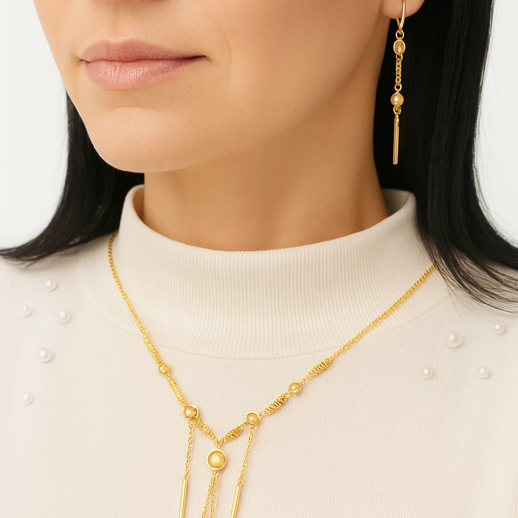Sada náhrdelníku a náušnic ve zlaté barvě pro slavnostní příležitost.