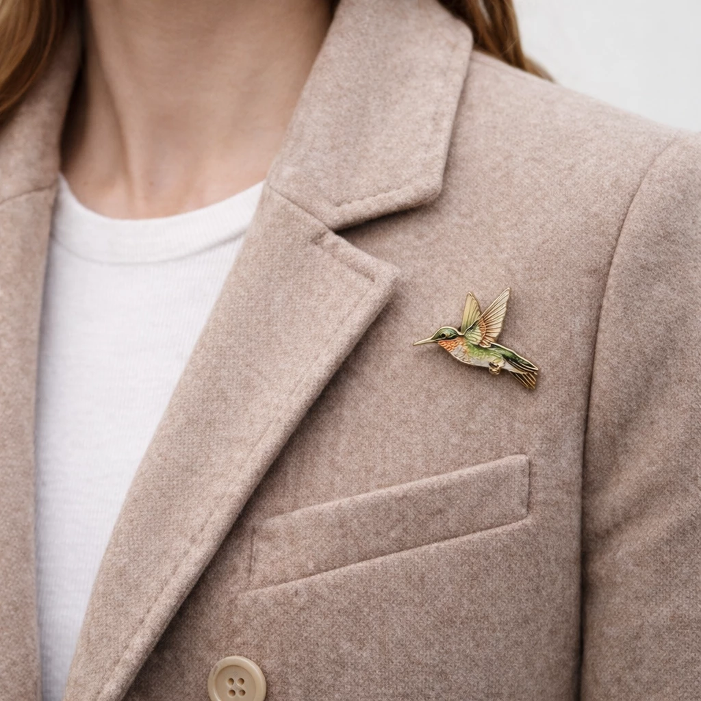 Brož Kolibřík je okouzlující doplněk, který vnese do vašeho stylu energii, lehkost a hravou eleganci.