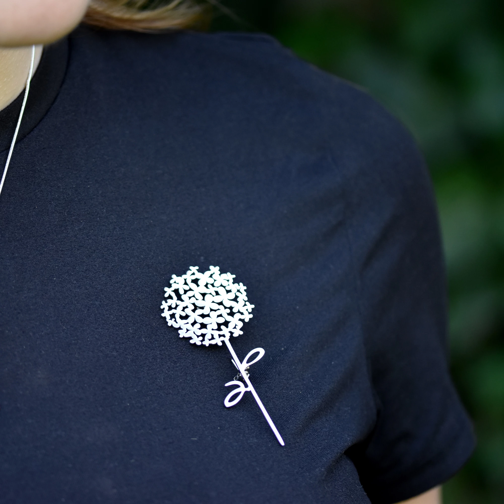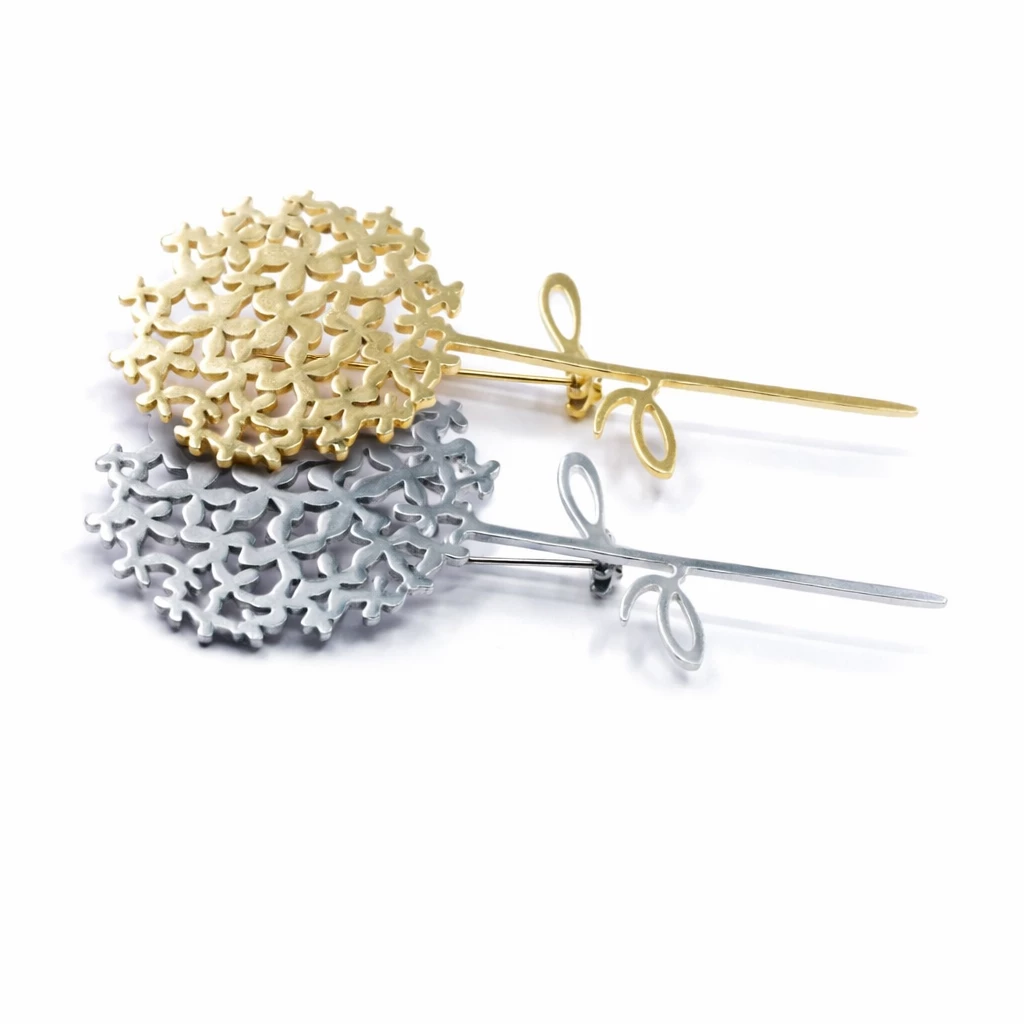 Brož Pampeliška zaujme svým originálním designem tvořeným jemnými liniemi připomínajícími květ pampelišky. Minimalistické kovové provedení působí moderně a nadčasově, díky čemuž se snadno kombinuje s každodenními i slavnostními outfity.