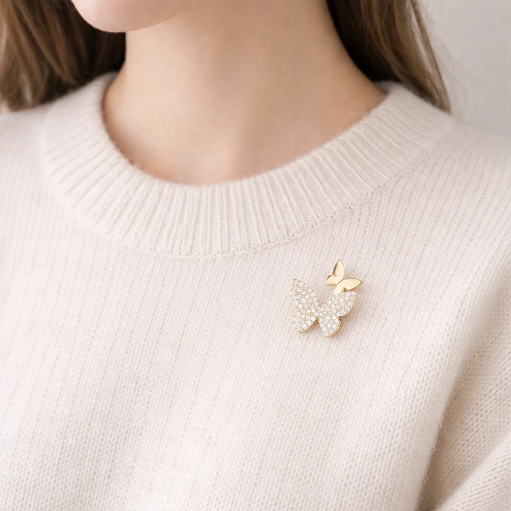 Brož Motýlek zaujme minimalistickým designem a decentním leskem kamínků. Díky čistým liniím a jemnému provedení se hodí jak pro každodenní nošení, tak i pro slavnostnější příležitosti.