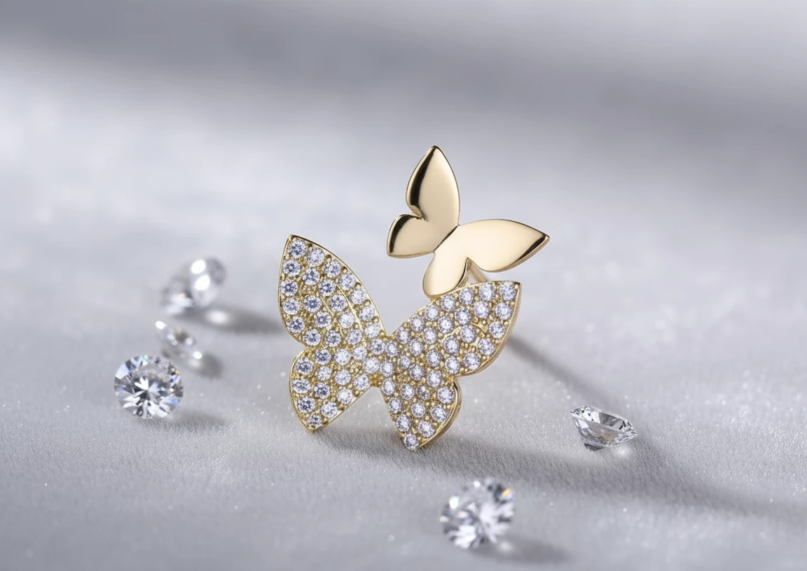 Kouzelný motýlek ve formě zlacené brože. Motýl je symbol změny, kreativity a především ženskosti a půvabu.