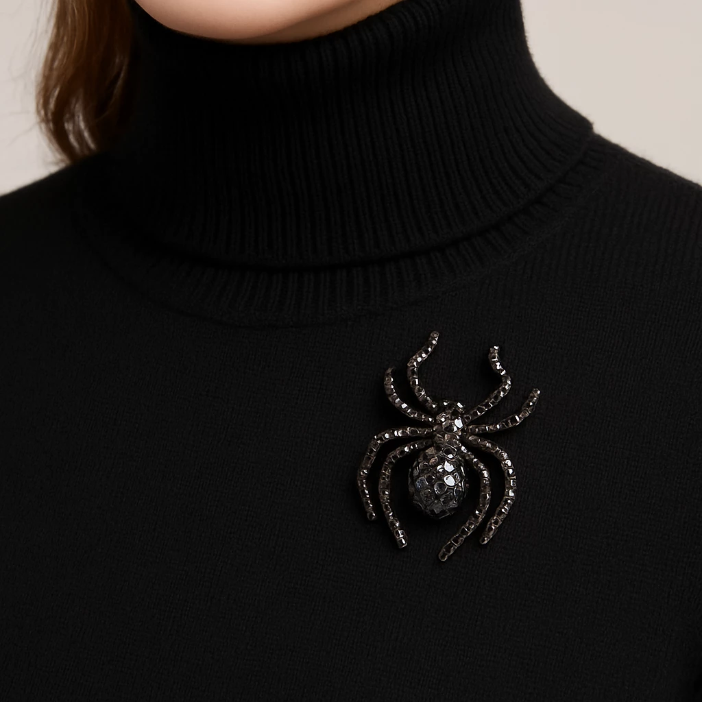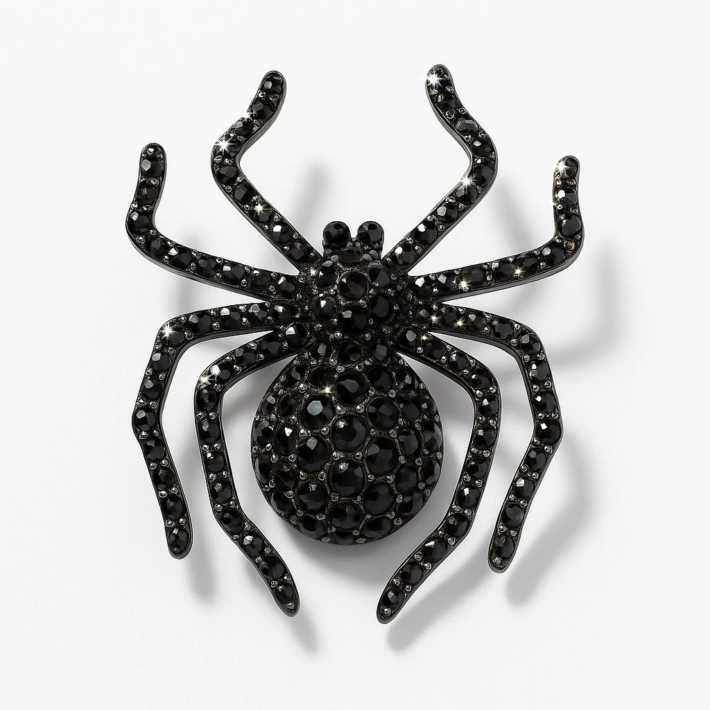 Brož je zdobena broušenými kamínky v čiré barvě a jedním velkým kamenem v barvě černé.