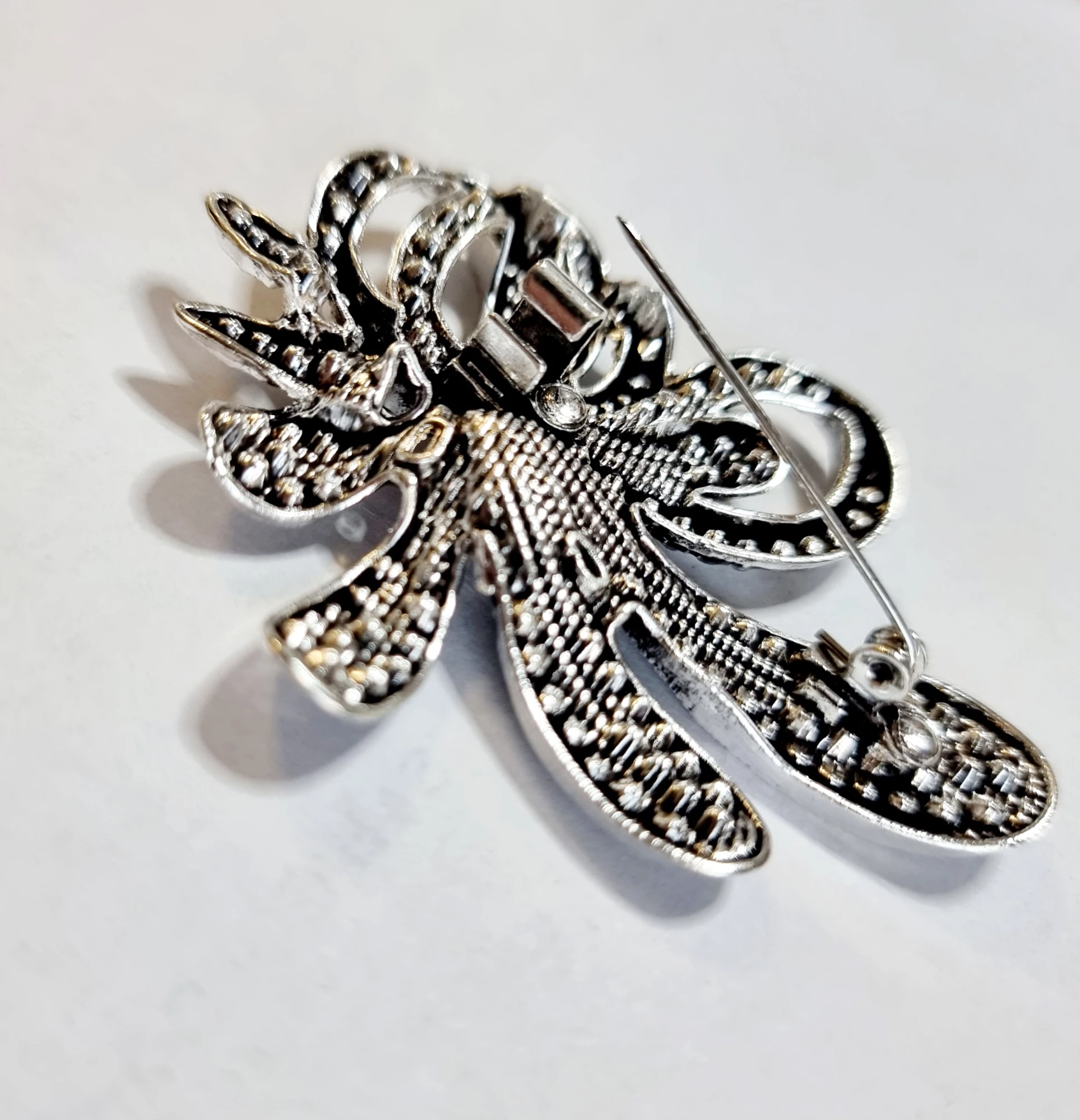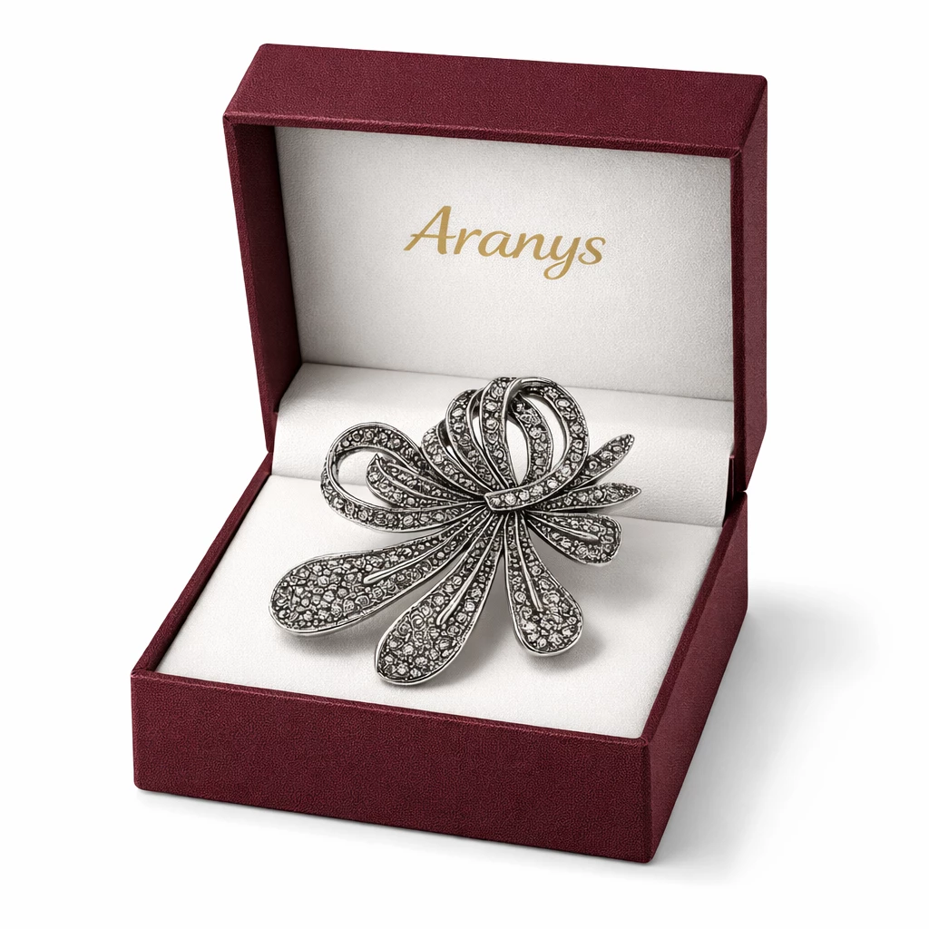 Krásná třpytivá brož s markazitem, které zajistí zářivý vzhled. Brož je vyrobena z kvalitního bižuterního kovu a zapínání má na jednoduchý špendlík.