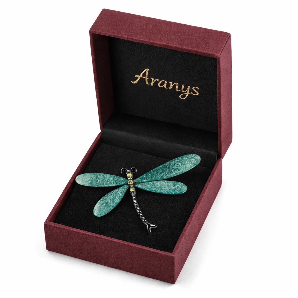 Kombinace tyrkysových křídel a tmavého těla působí luxusně a moderně. Brož je ideální pro ženy, které mají rády originální doplňky, ale zároveň chtějí zachovat jemnou eleganci.