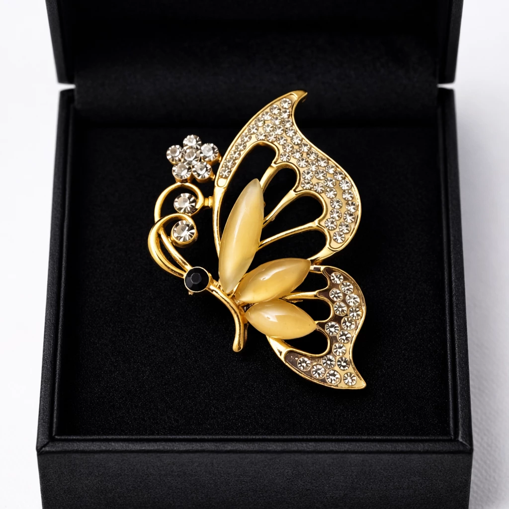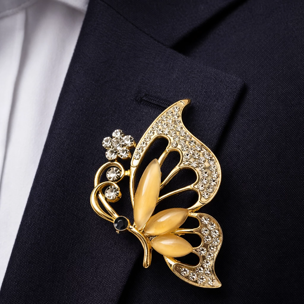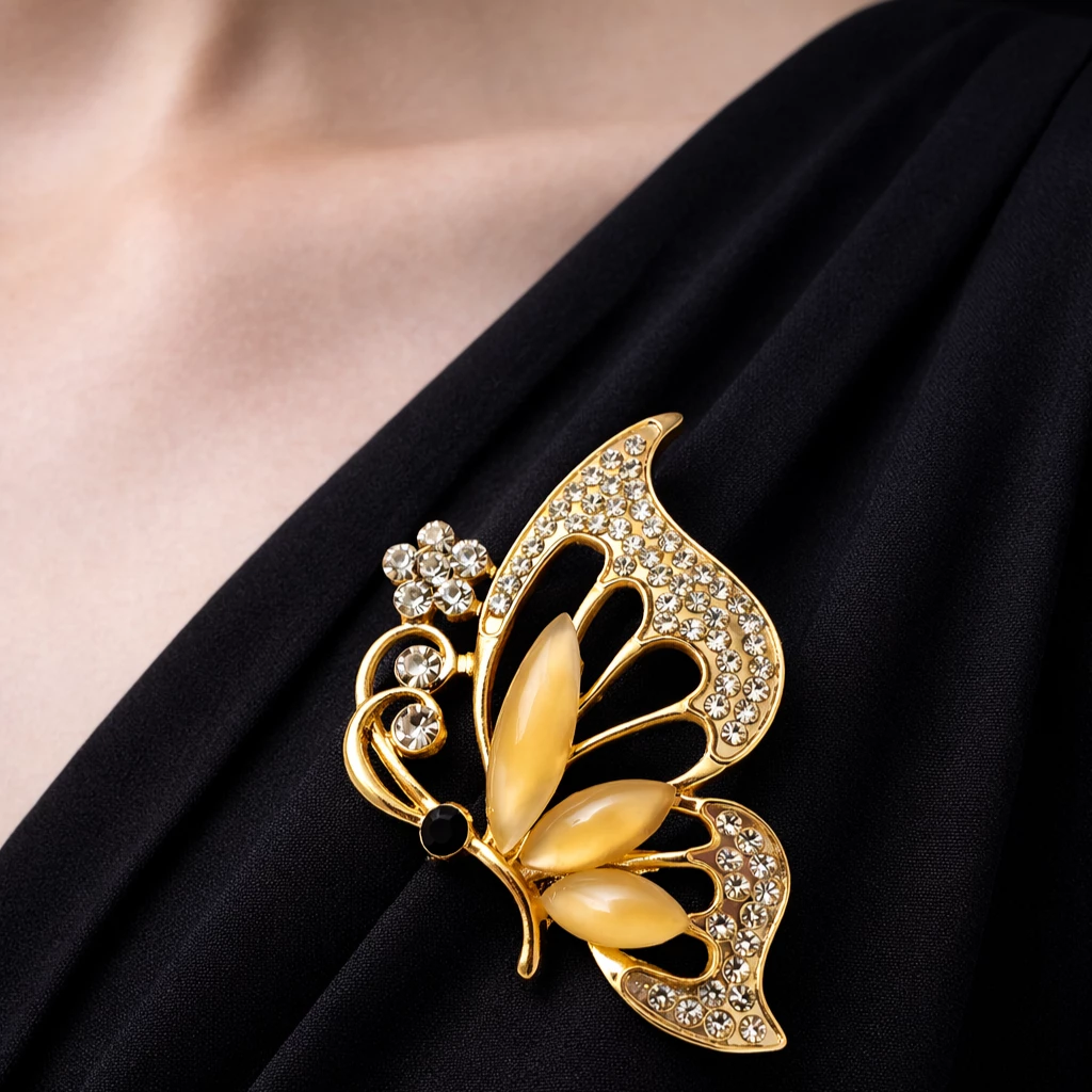 Brož Motýlek je okouzlující doplněk, který vnese do vašeho stylu lehkost, eleganci a jemný třpyt.