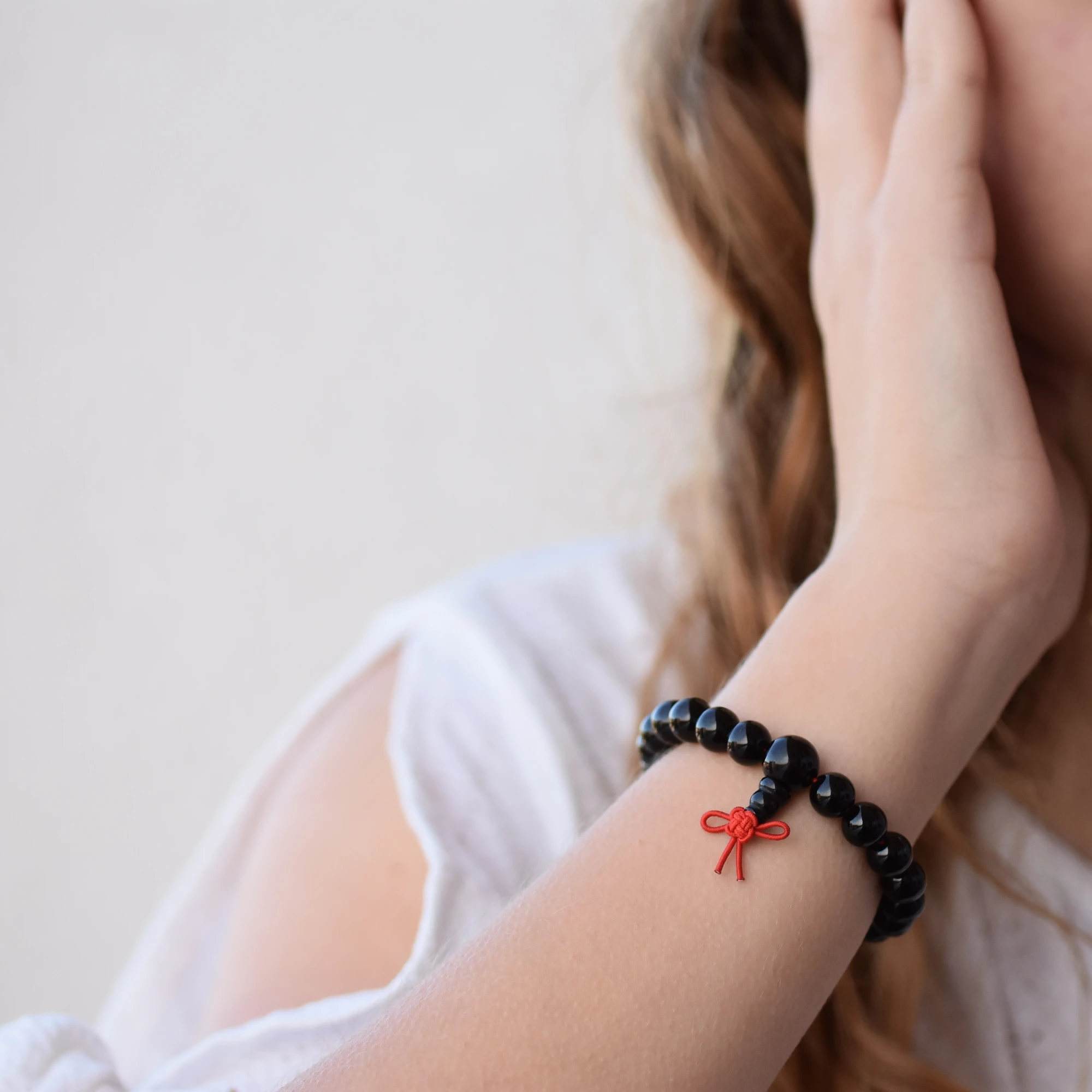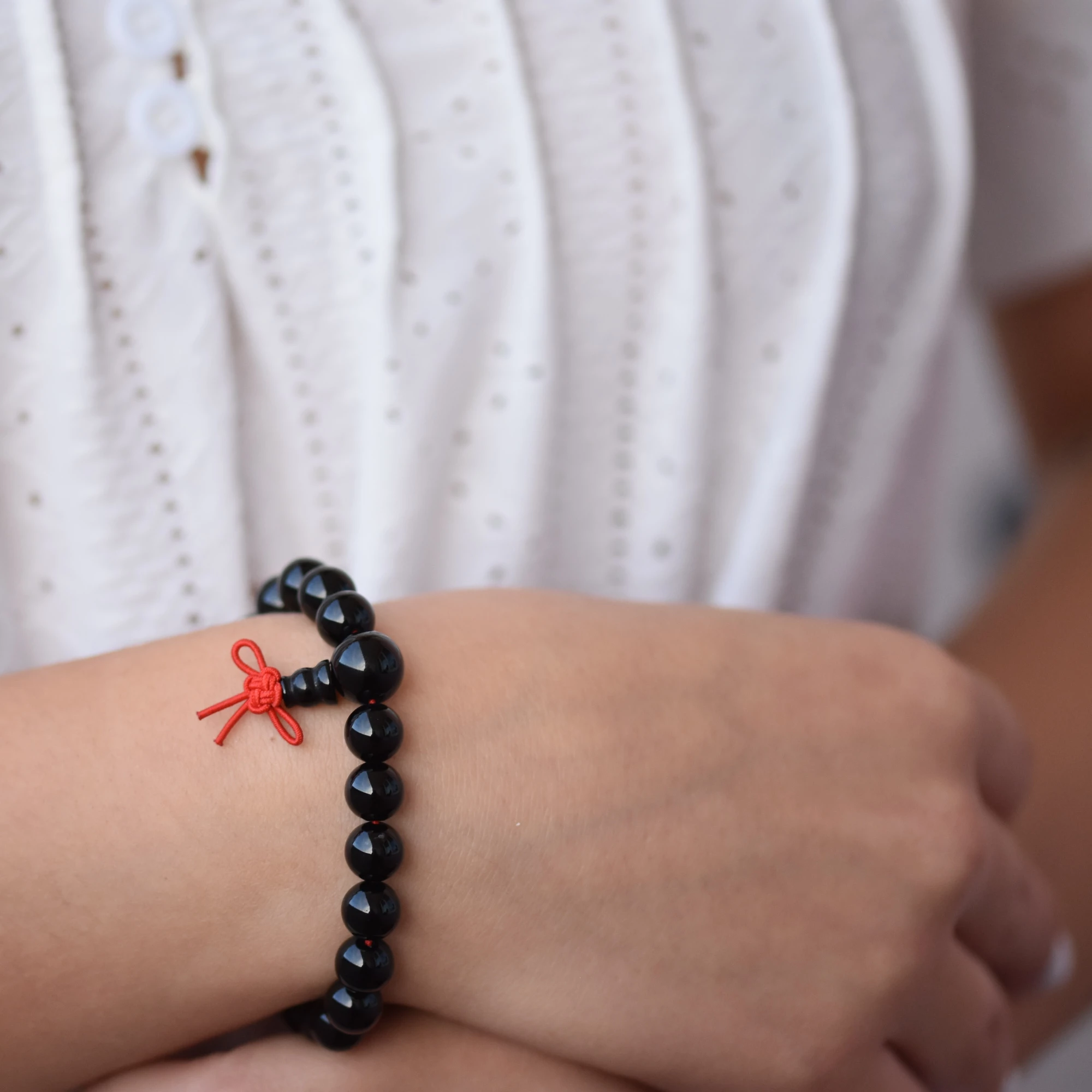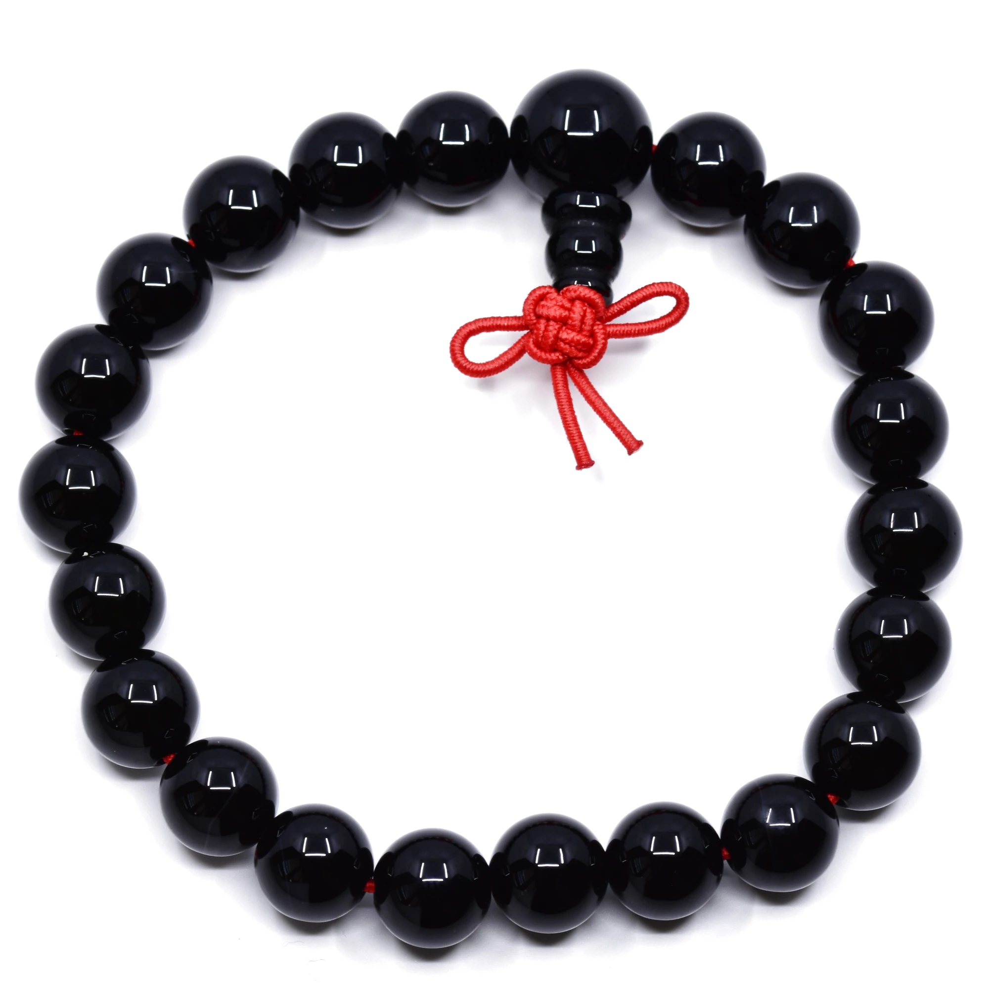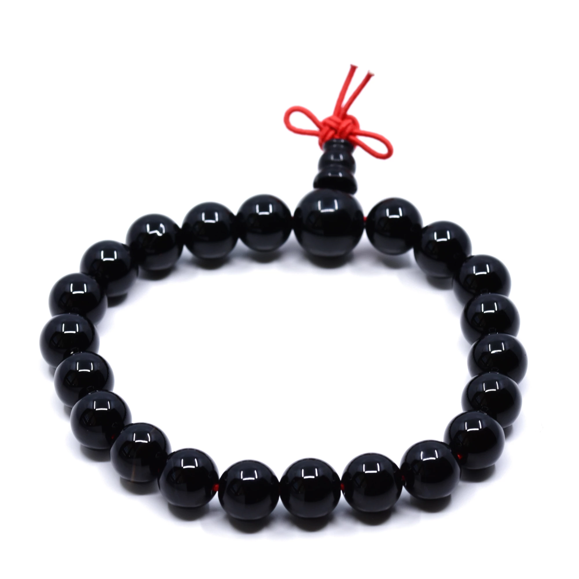 Černý kuličkový energetický náramek z kamene onyx. V tomto unisex náramku jsou kuličky přesně sestaveny podle pradávného buddhistického učení.