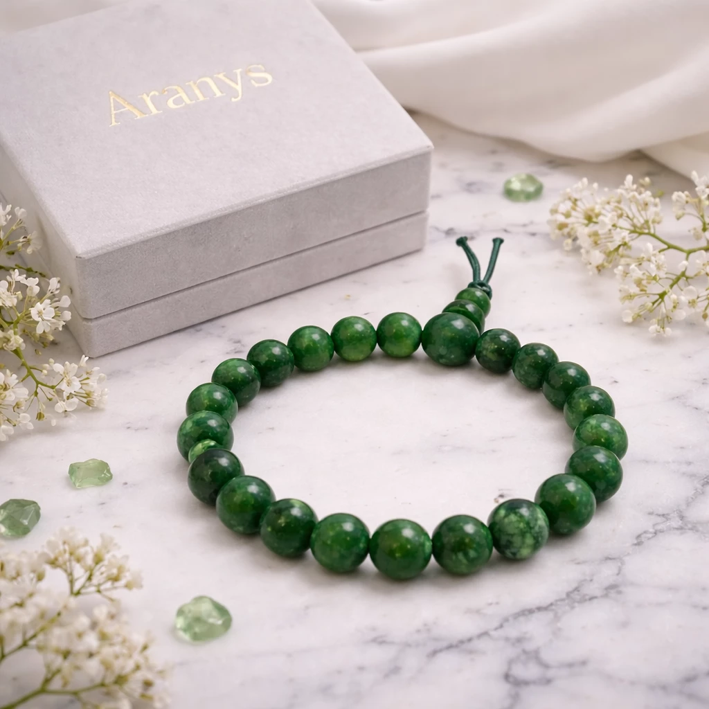 Náramek nefrit Prosperita je symbolem klidné hojnosti a harmonického růstu.