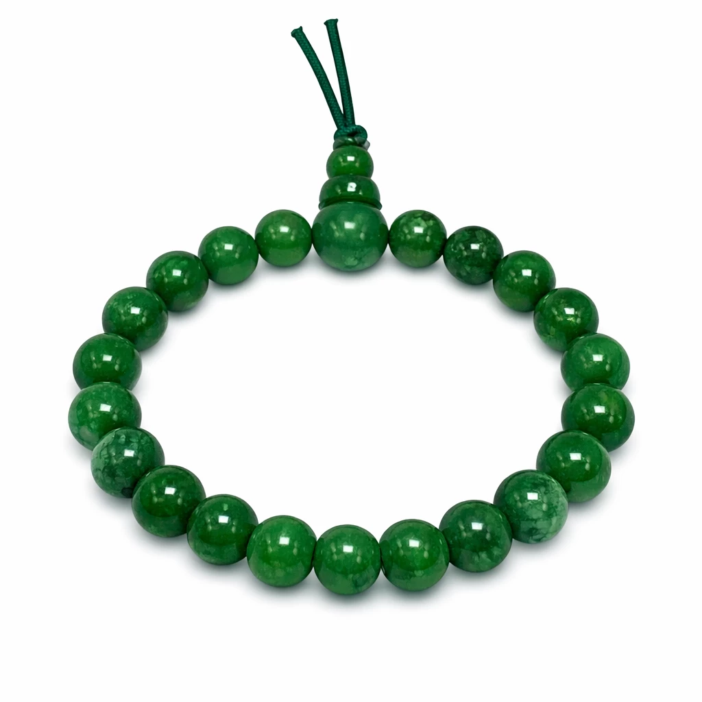 Buddhův energetický náramek nefrit Prosperita se skládá z 21 menších kuliček a mistrovského kamene (jedné větší, též nazýváno Guru). Kamenné kuličky jsou navlečeny na šperkařské gumičce a náramek navazuje na buddhistické tradice modlitebních korálků k meditaci.