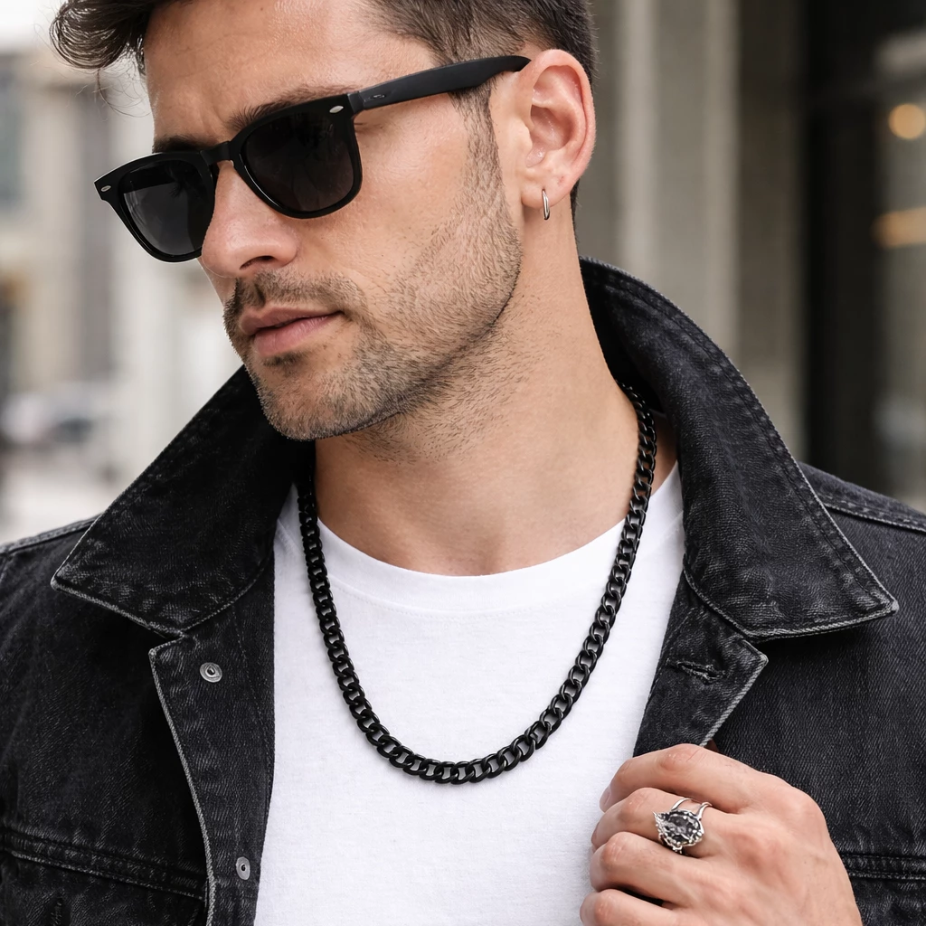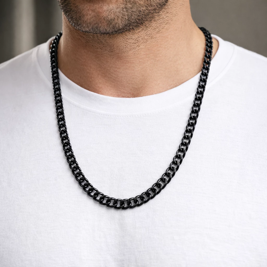 Řetízek z oceli, který je černé barvy. Tento velmí žádaný černý řetízek je stylovým doplňkem každého muže. Díky černé barvě se hodí ke každodennímu nošení.