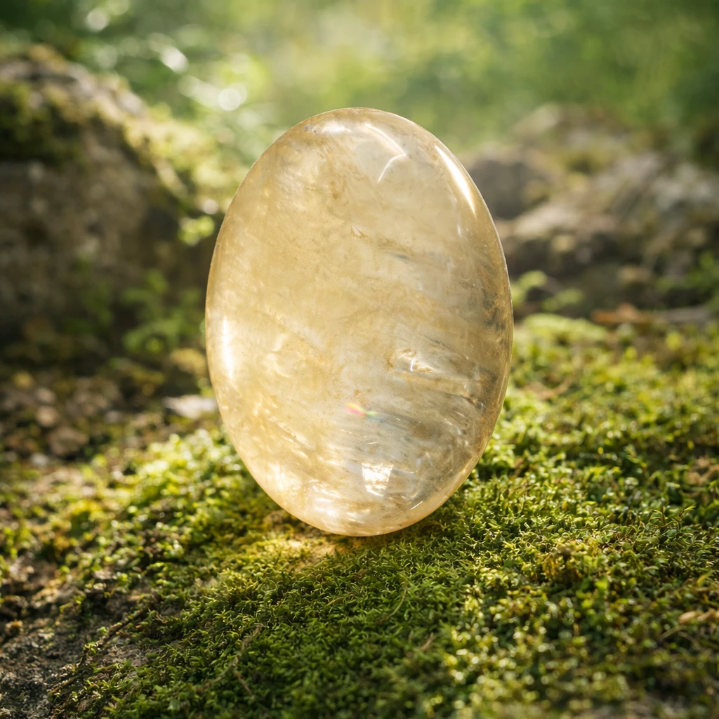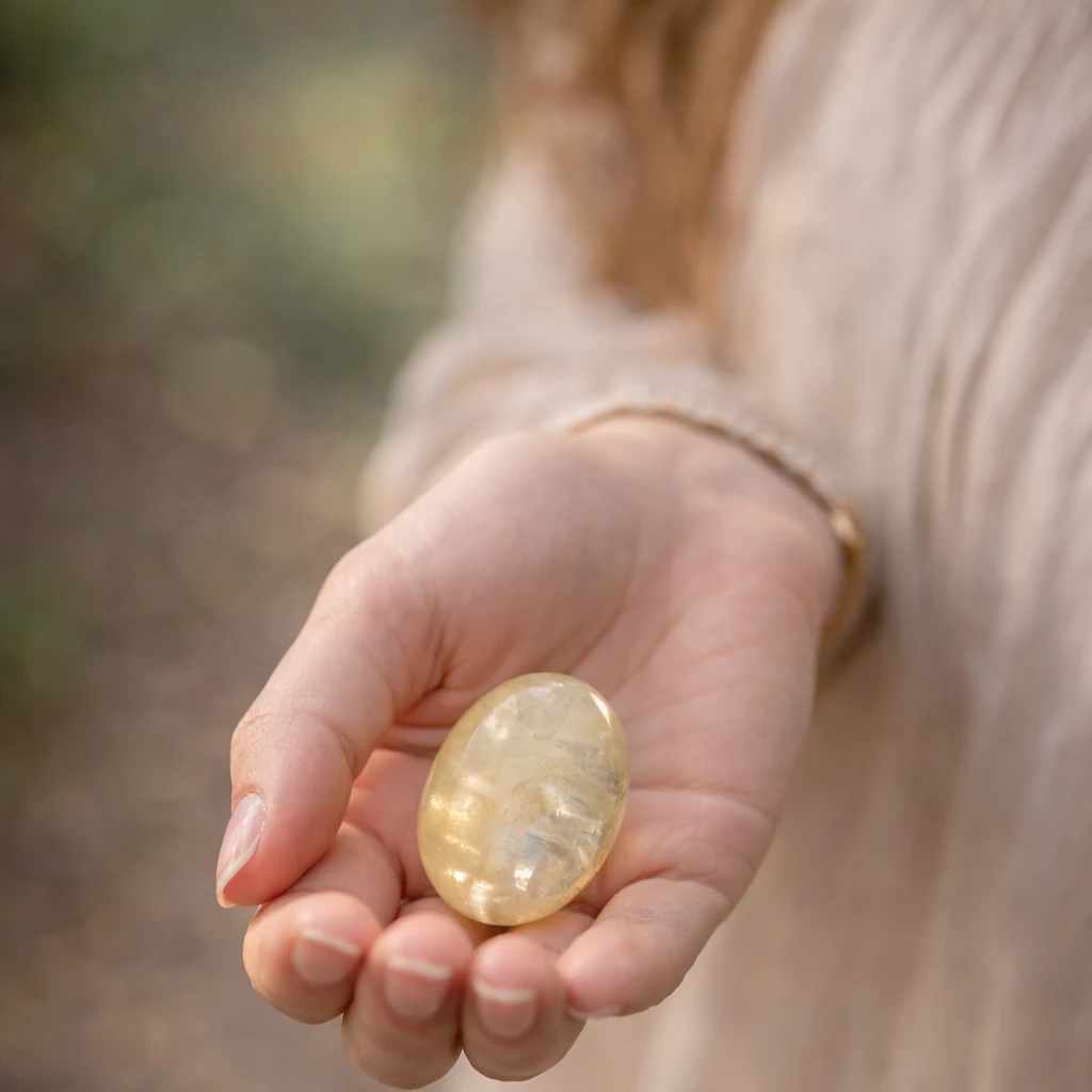 Citrínový hmatový kámen je symbolem světla, radosti a energie, která podporuje nové příležitosti i osobní růst.