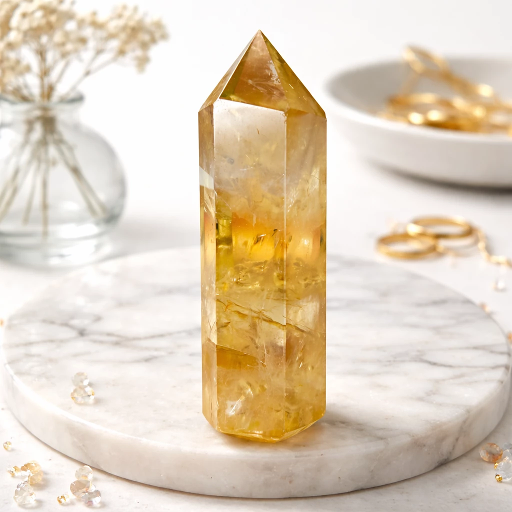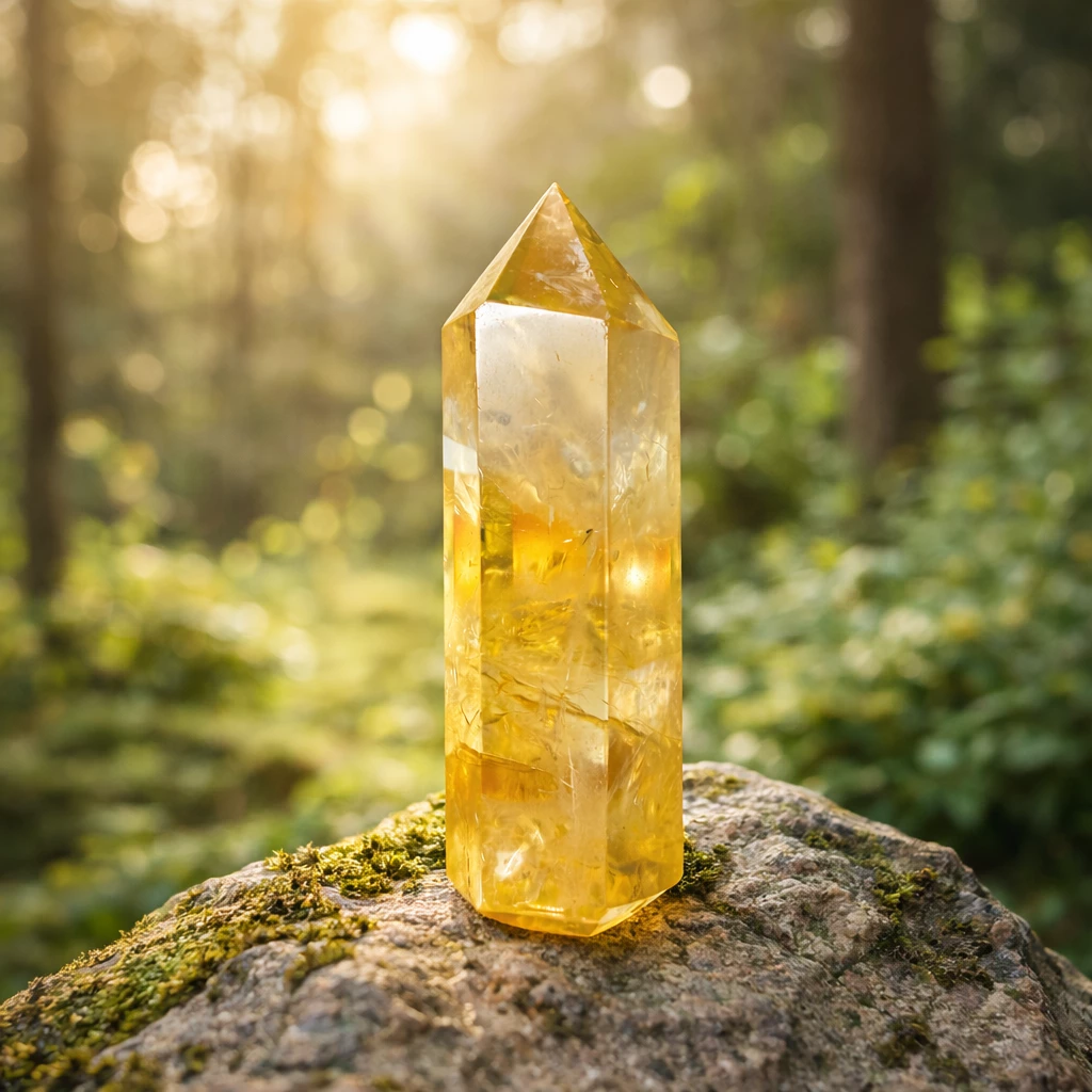 Citrínový obelisk je symbolem světla, růstu a energie, která podporuje nové příležitosti i osobní rozvoj.
