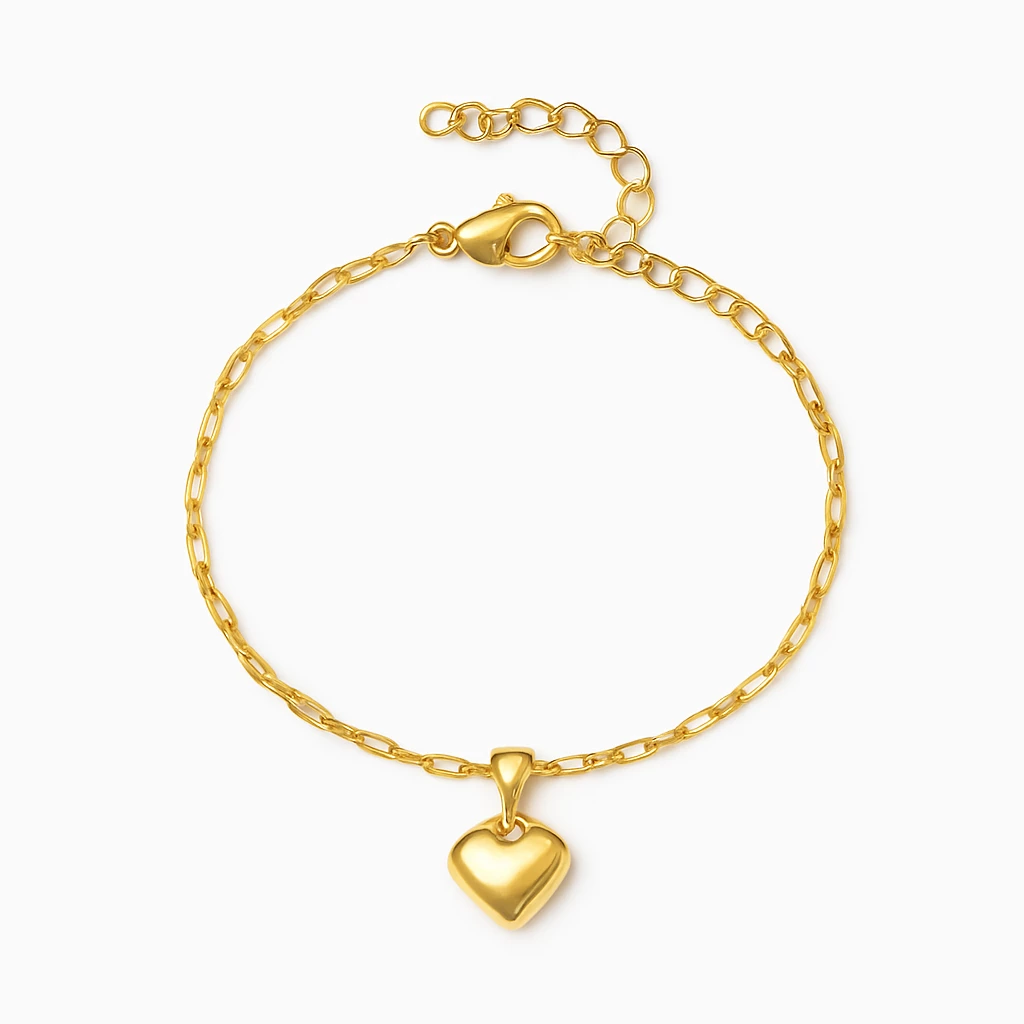 Dámský zlacený náramek z chirurgické oceli s přívěskem ve tvaru srdíčka, má velmi zajímavé zapínání na provlékání.