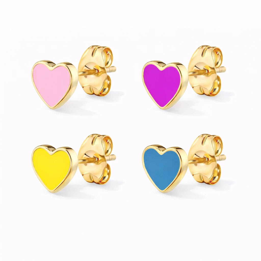 Stříbrné zlacené dětské náušnice srdíčka Lavish jsou vyrobeny z kvalitního Stříbra Ag 925/1000 s povrchovou úpravou zlacení. Roztomilý motiv srdíčka doplňuje barevný smalt, který dodává náušnicím hravý a výrazný vzhled.
