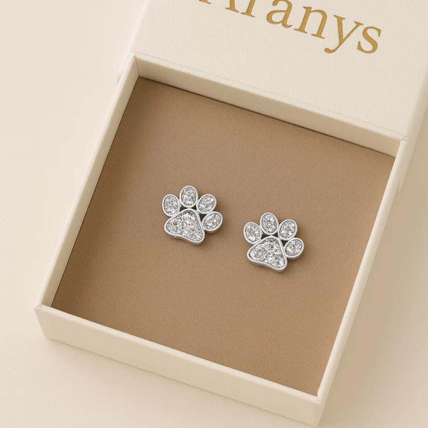 Tyto stříbrné náušnice ve tvaru tlapky jsou něžným symbolem lásky ke zvířatům. Jsou osazené drobnými třpytivými zirkony, které jim dodávají jemný luxusní lesk, aniž by působily přehnaně.