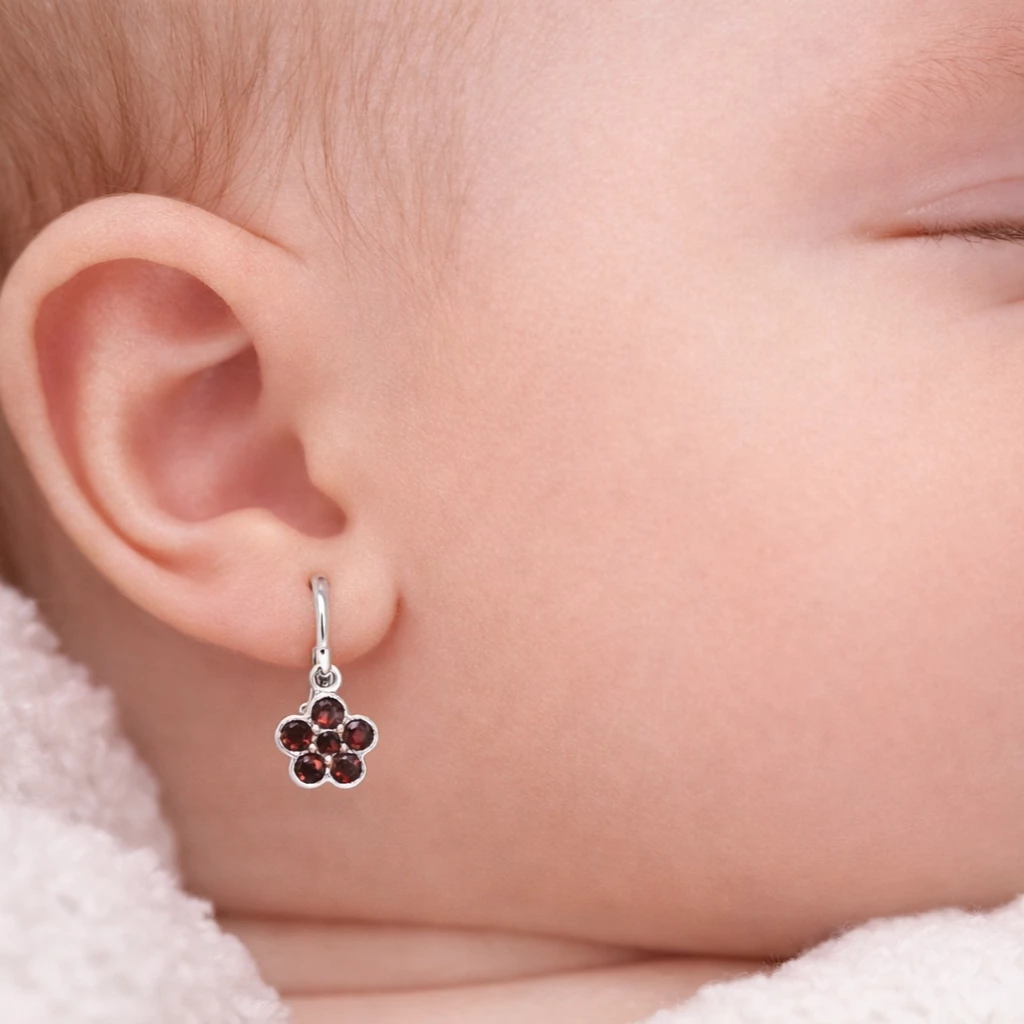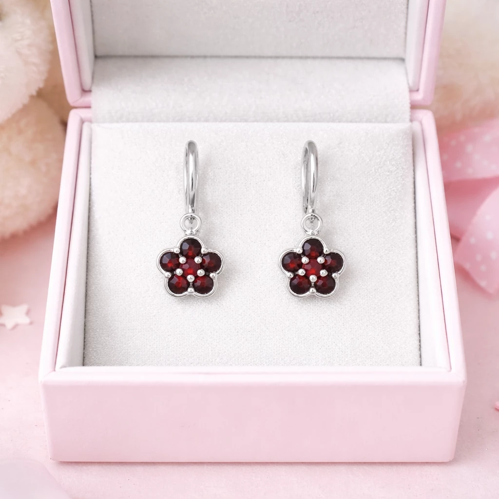 Tyto stříbrné náušnice Serafina s českým granátem ve tvaru květu jsou vyrobeny z kvalitního Stříbra Ag 925/1000 a doplněny rhodiovanou povrchovou úpravou, která zajišťuje vyšší odolnost a dlouhotrvající lesk. Typické sytě červené granáty jsou pečlivě zasazeny do květinového motivu, který působí jemně a zároveň výrazně.