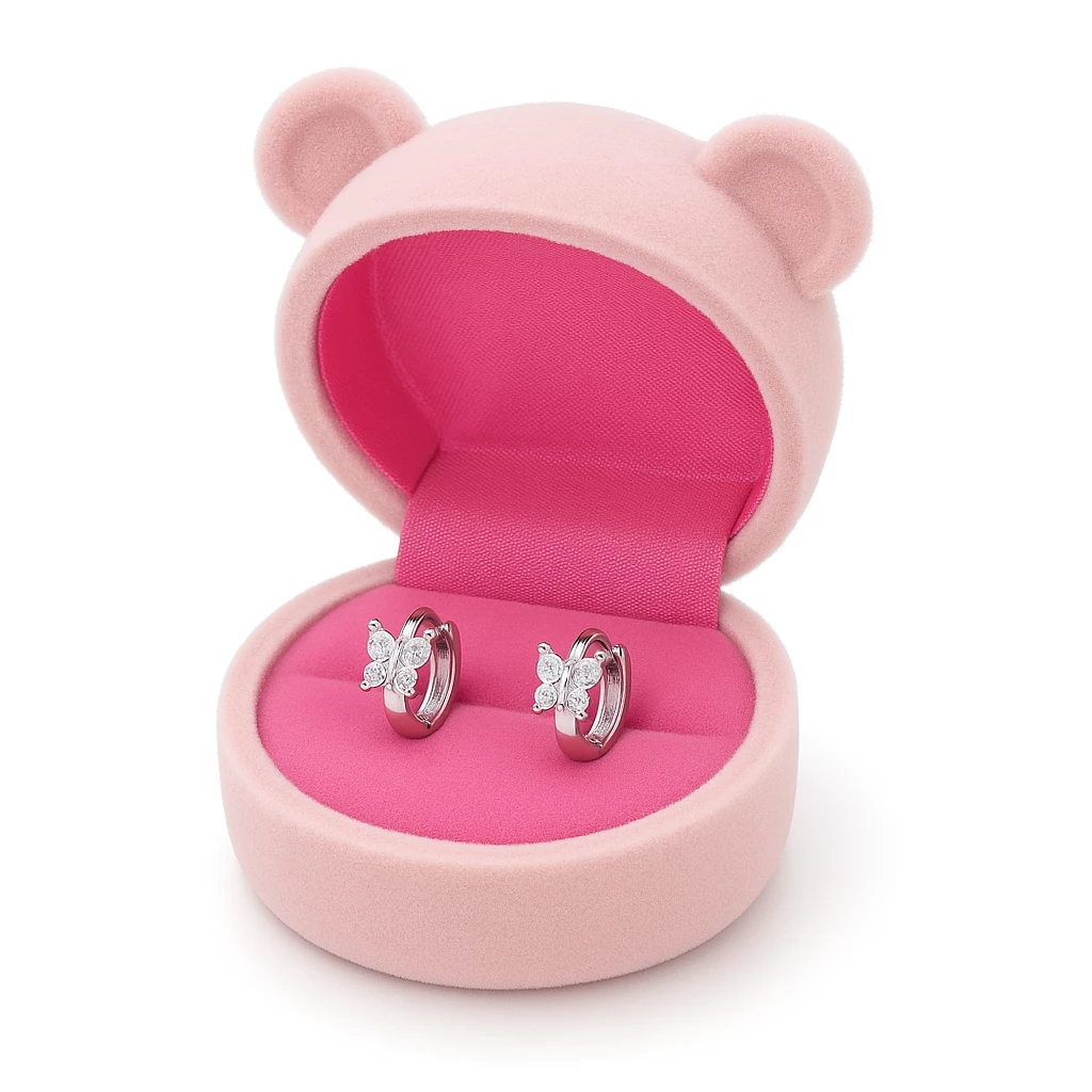 Velmi hezké náušnice ve tvaru motýlka se čtyřmi čirými, krásně vybroušeným zirkony, bezpečně usazenými ve stříbrném lůžku, ocení každá malá slečna. Díky preciznímu brusu se zirkony, se náušnice nádherně lesknou.