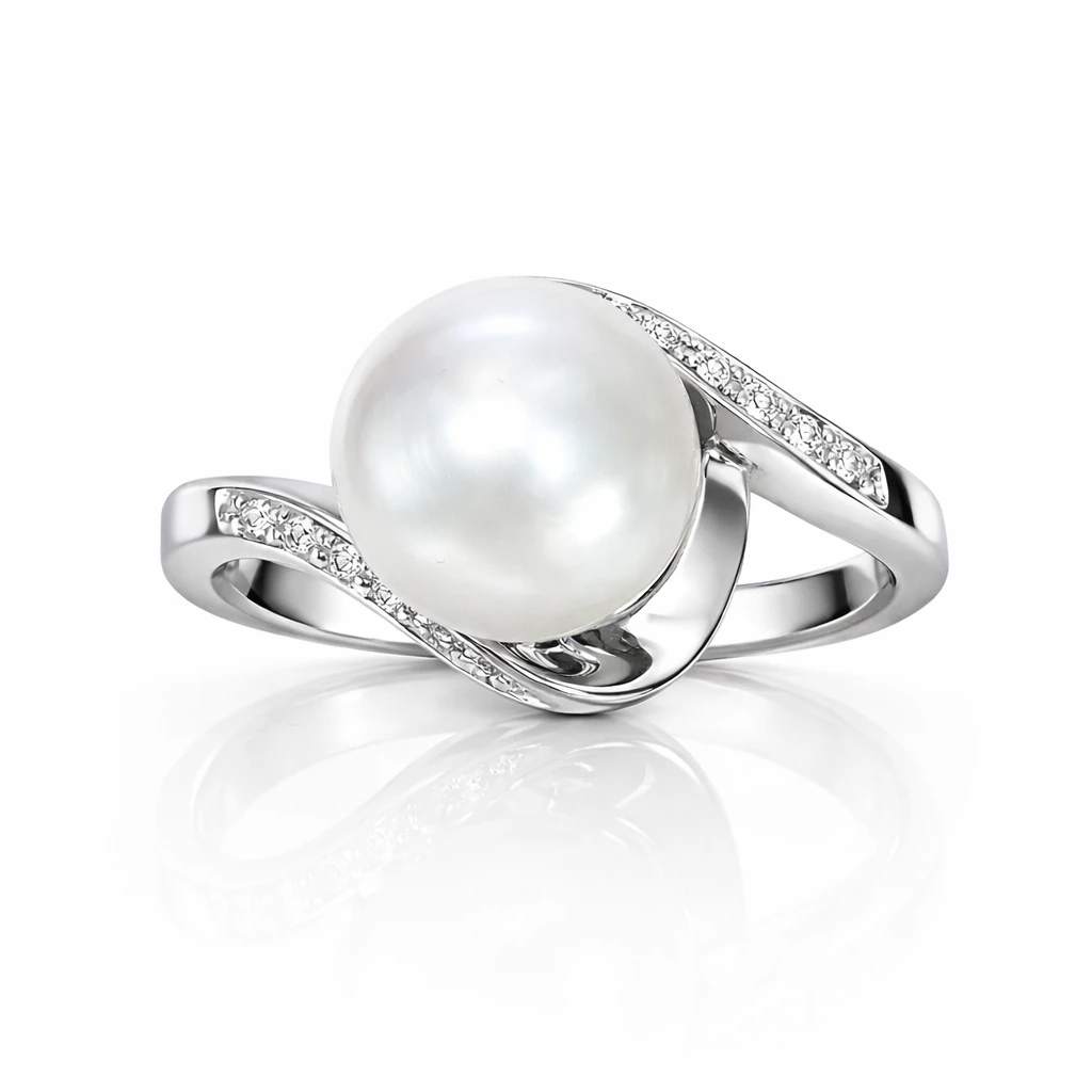 Stříbrný prsten s perlou a zirkony Perlia je vyroben ze Stříbra Ag 925/1000 s povrchovou úpravou rhodiování, která zajišťuje vysoký lesk a delší životnost šperku. Dominantou je bižuterní perla, kterou po obou stranách doplňují třpytivé zirkony (kubické zirkonie).