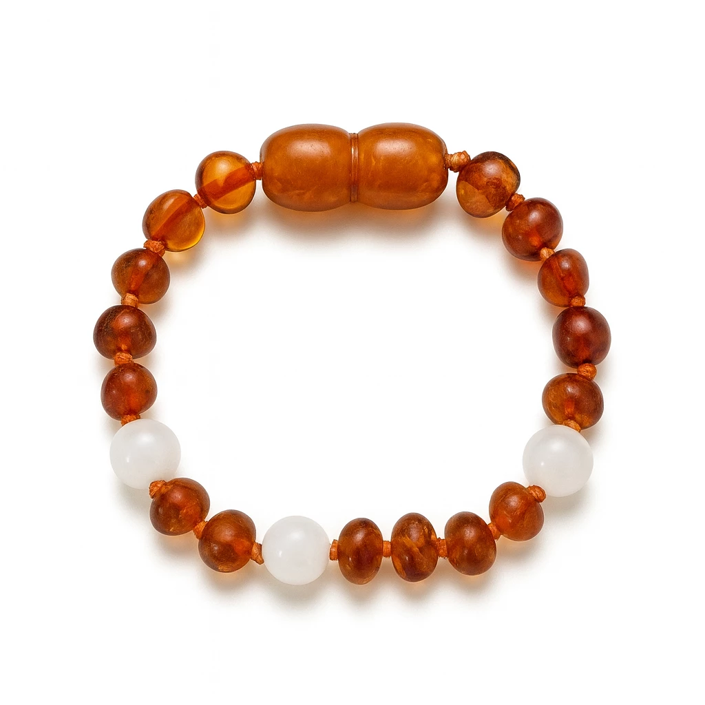 Nádherný jantar je velice oblíbený nejen pro své pozitivní vlastnosti, ale také proto, že díky němu máte vždy zaručeně vkusný šperk, kterým doplníte jakýkoliv kousek z vašeho šatníku. Mohutnější náramek v kombinaci polodrahokamů, litevského jantaru a stříbrných korálků, které jsou navlečeny na průhledné šperkařské gumičce.