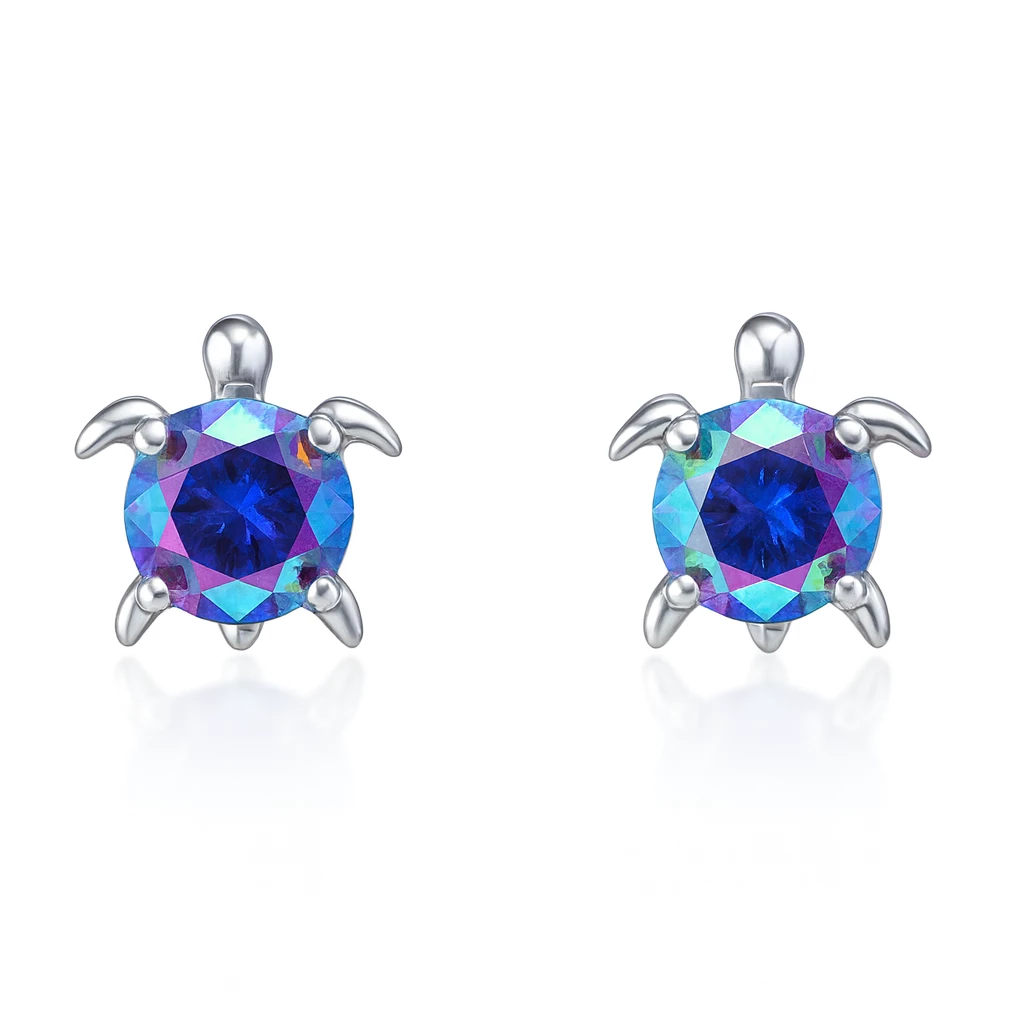 Krásné dětské stříbrné náušnice ve tvaru želvičky se zirkonem.