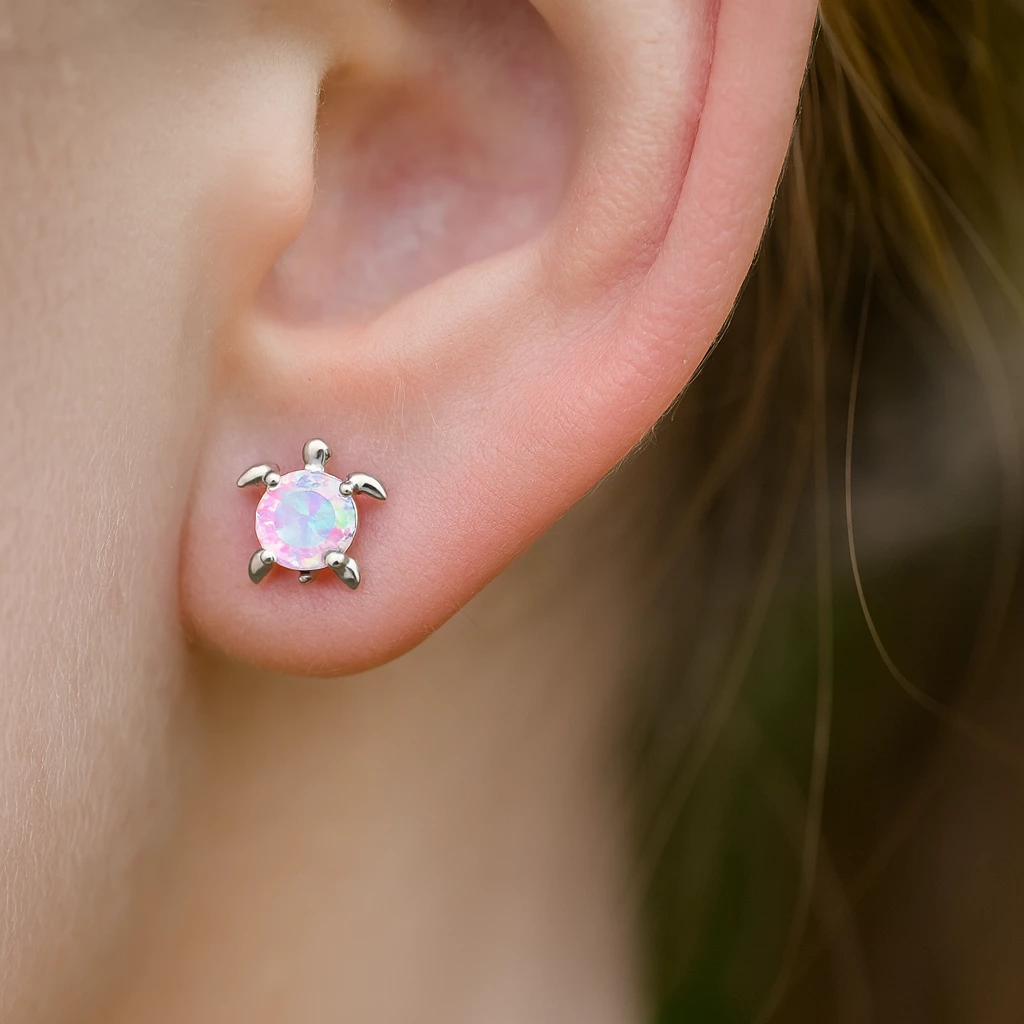 Dětské náušničky želvy s čirým zirkonem, který má neskutečný brus s nádhernými odlesky.