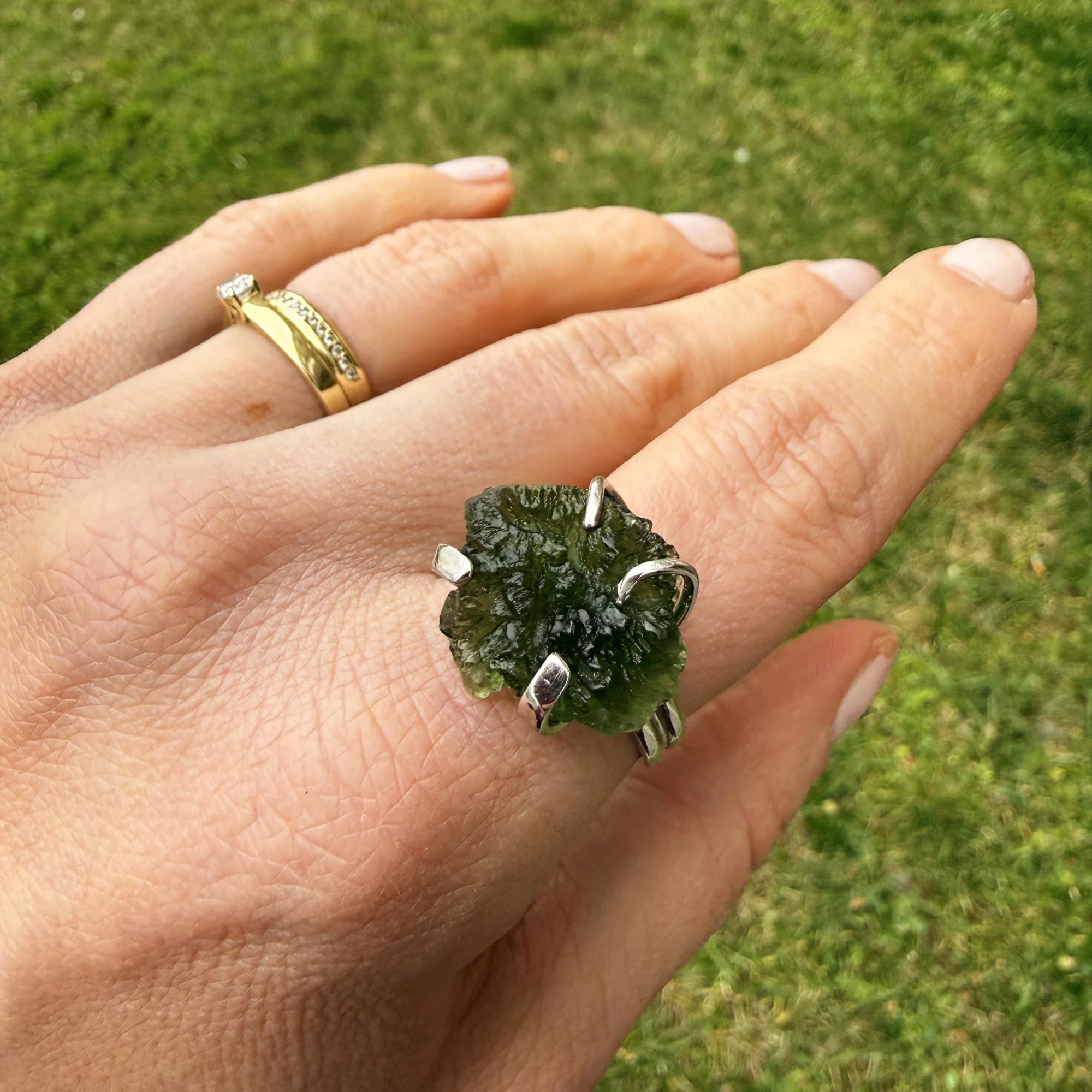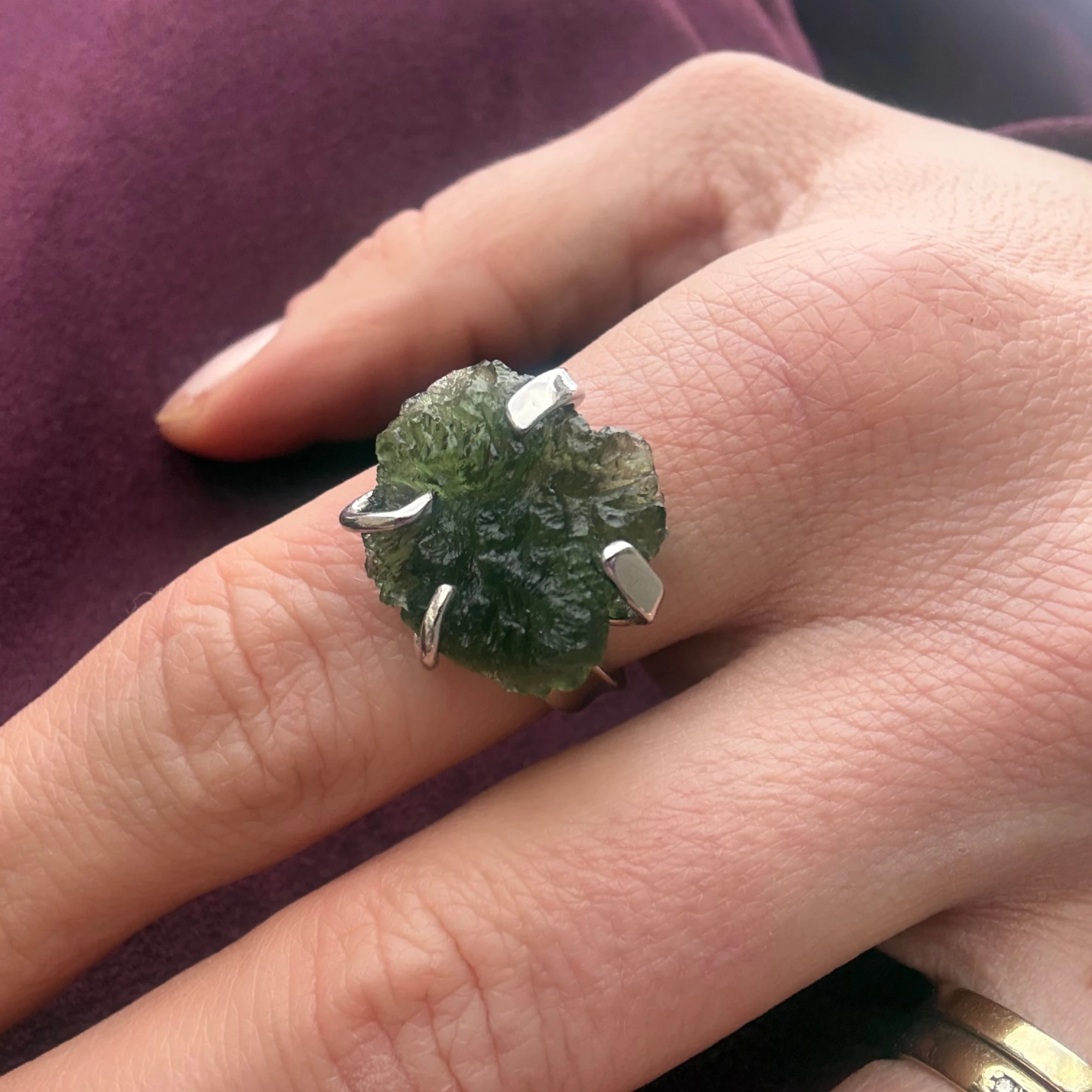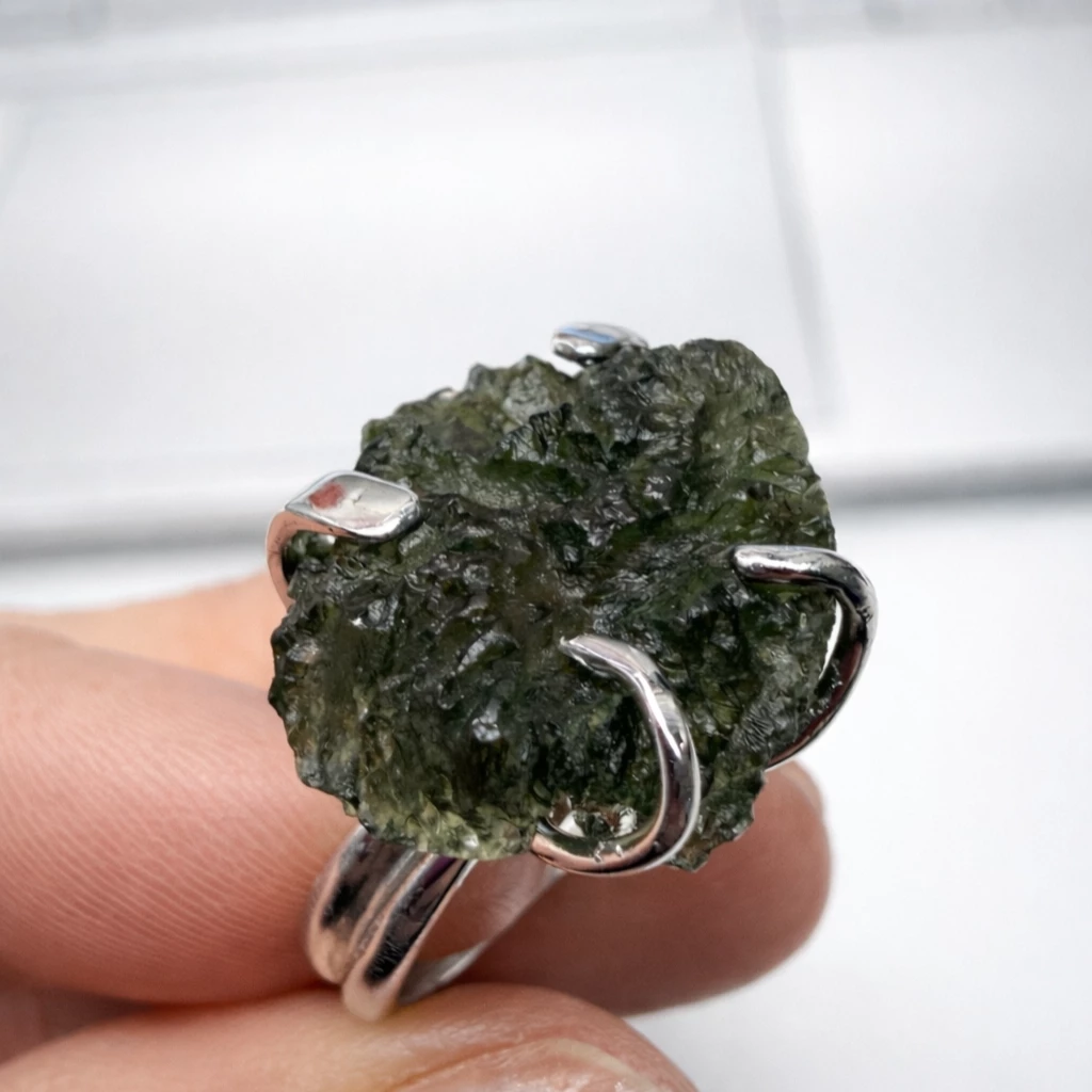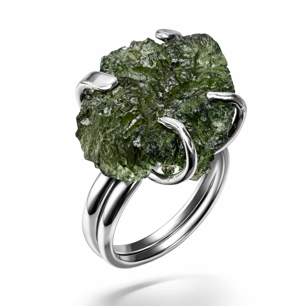 Stříbrný prsten se surovým vltavínem Rawa je výjimečný šperk, který zaujme svou autentickou přírodní krásou. Dominantou je neopracovaný vltavín zasazený do Stříbra Ag 925/1000, který vytváří jedinečný a nepřehlédnutelný design.