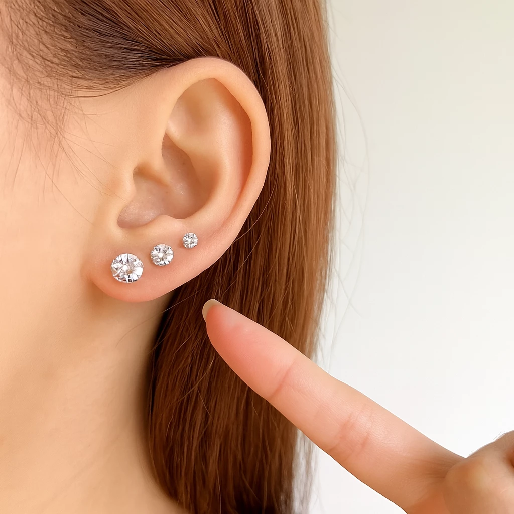 Dámské minimalistické náušnice různých velkostí se zirkonem.