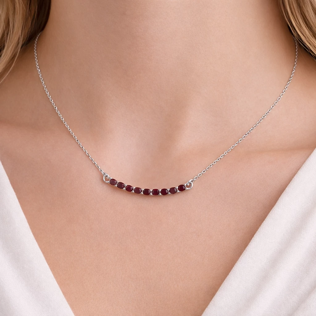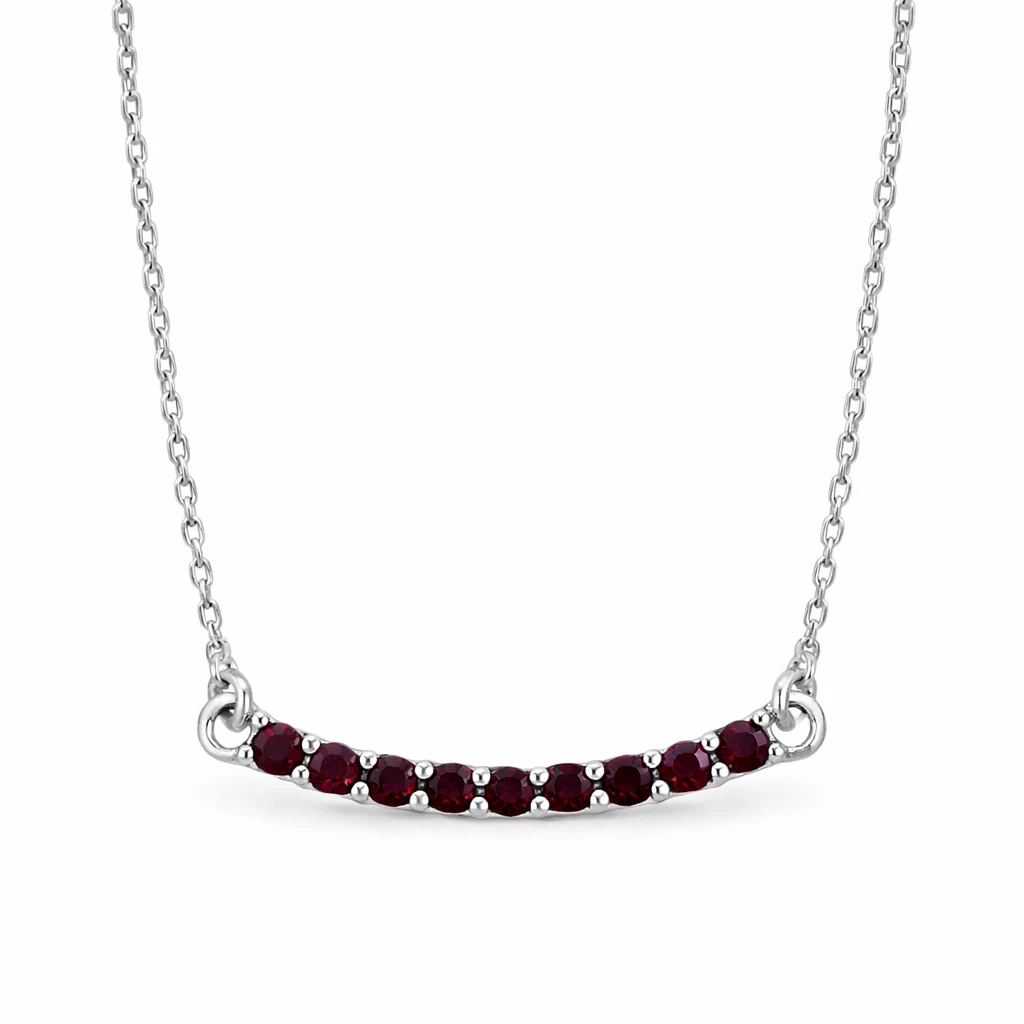 Jemný stříbrný náhrdelník s českým granátem Cristine je vyroben ze Stříbra Ag 925/1000 a zdoben elegantní řadou drobných granátů v hlubokém vínovém odstínu.