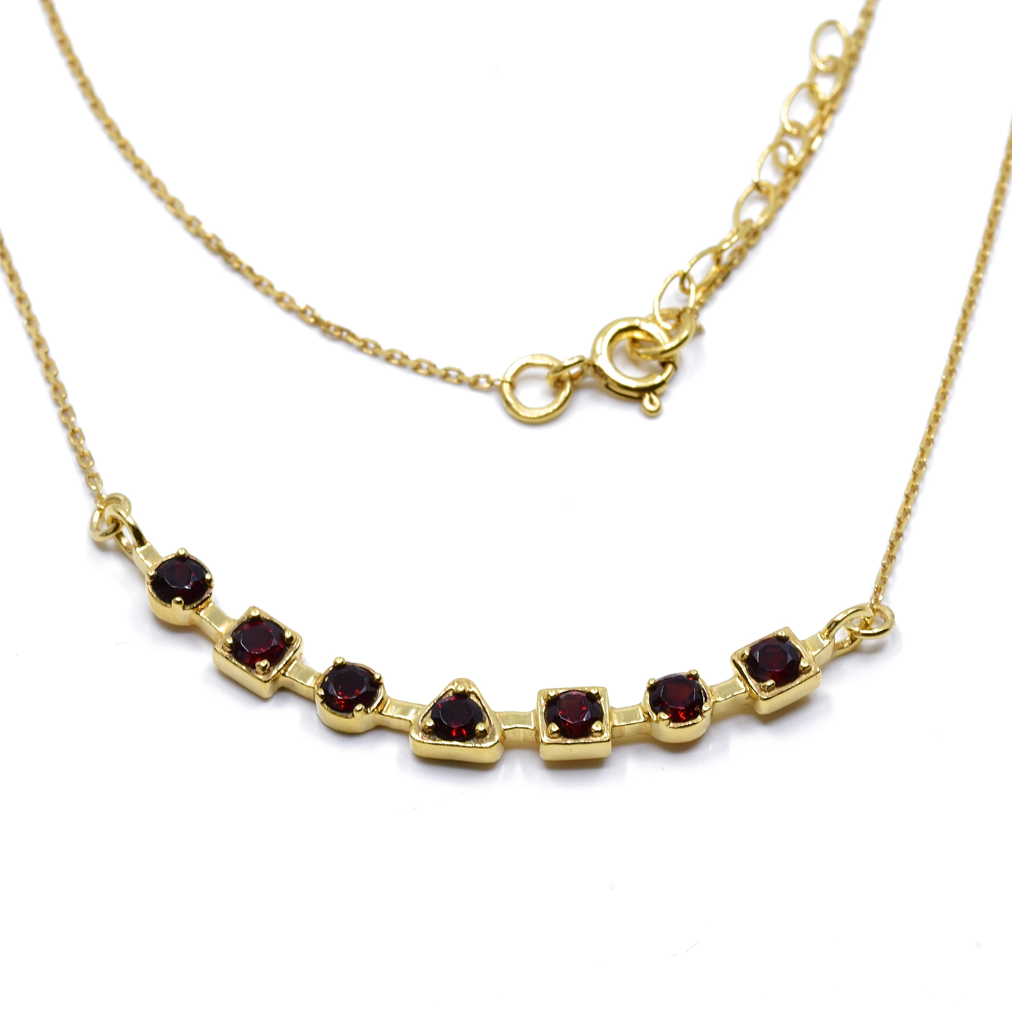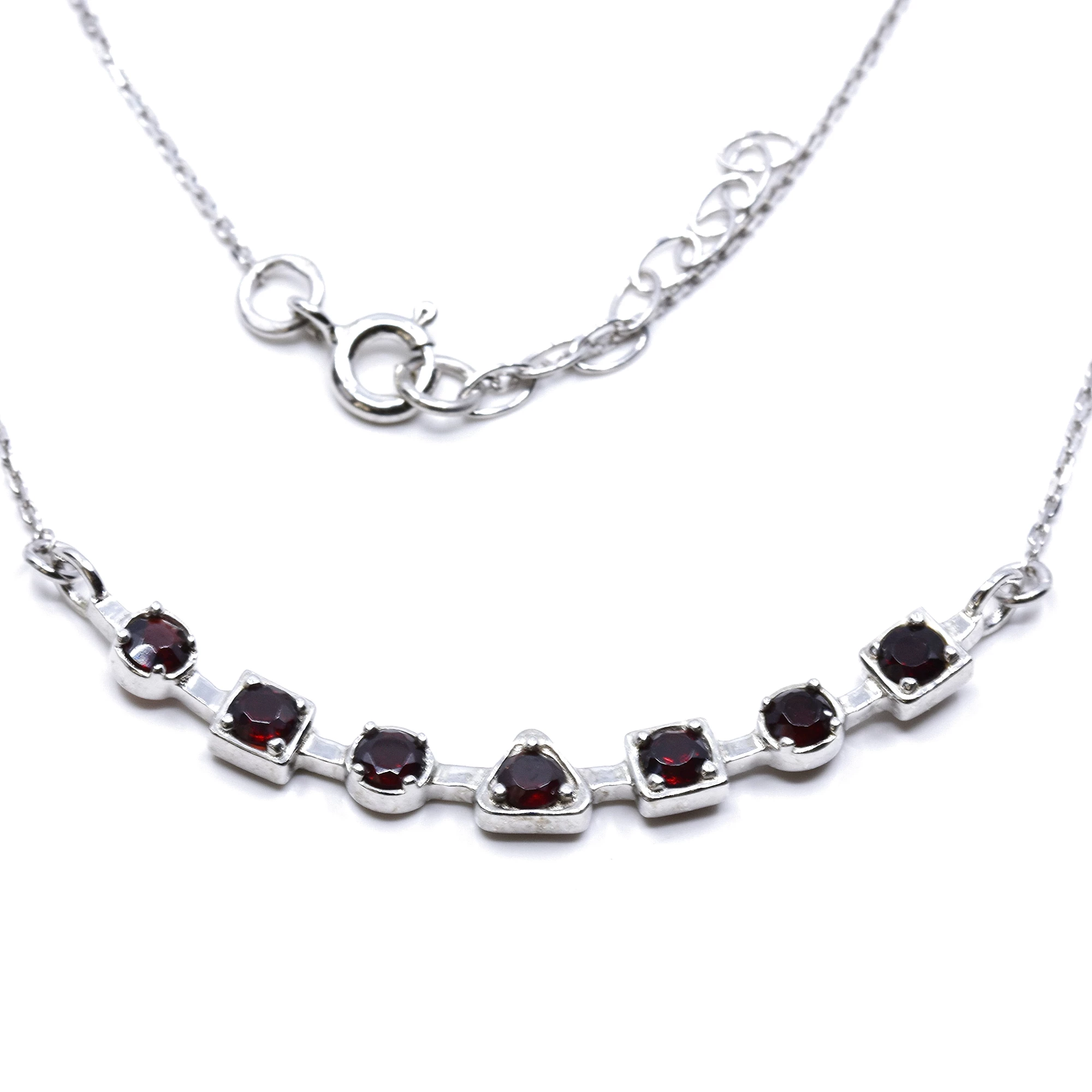 Stříbrný náhrdelník osázený broušenými českými granáty. Náhrdelník je opatřený prodlužovacím 3 cm řetízkem, díky kterému si jeho konečnou délku sama zvolíte. Nabízíme jak v rhodiované, tak zlacené variantě. Vámi preferovanou variantu si zvolíte ve filtru.