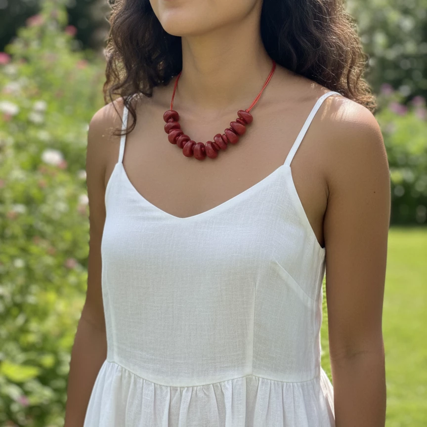 Krásný dámský červený náhrdelník howlit. Tento náhrdelník perfektně doladí Váš outfit. Výrazný dámský náhrdelník s kamenem.