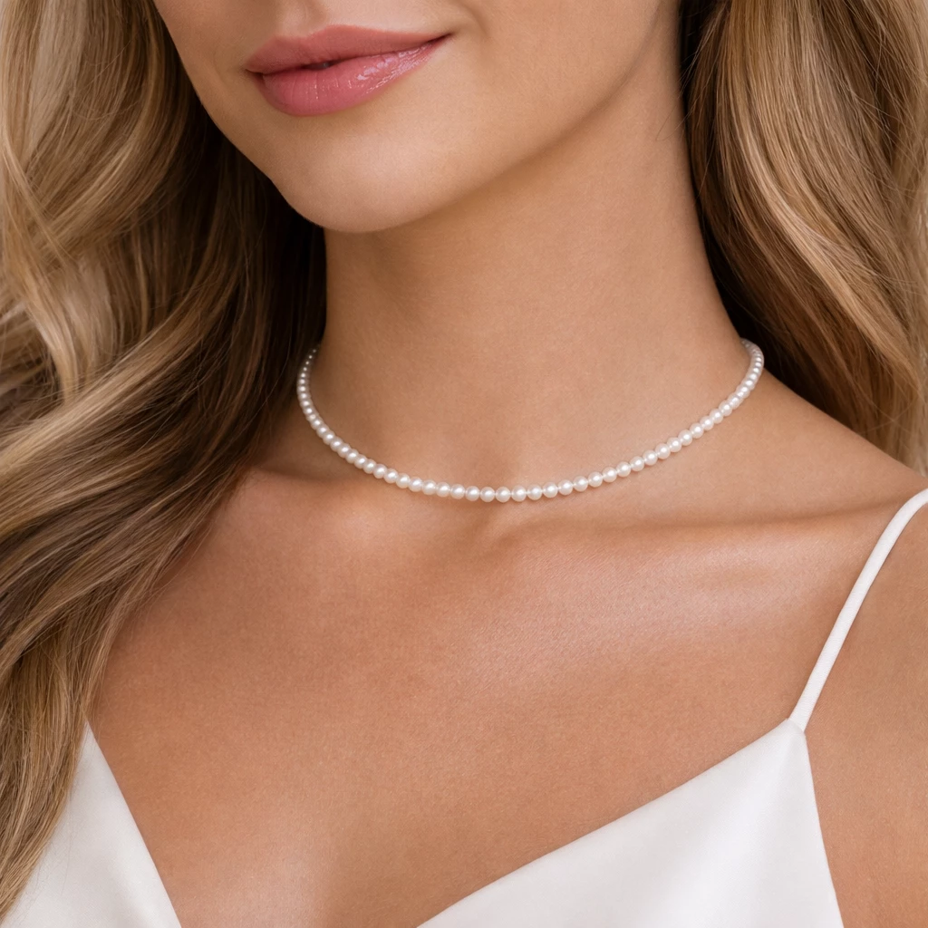 Perličkový náhrdelník bílý Laurent je jemný bižuterní šperk tvořený drobnými lesklými perličkami o velikosti přibližně 3 mm. Díky subtilnímu provedení je ideální pro vrstvení s dalšími náhrdelníky i pro samostatné nošení.