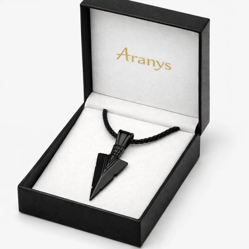 Tento pánský náhrdelník z černé nerezové oceli zaujme na první pohled svým čistým a moderním designem. Dominantní přívěsek ve tvaru šípu symbolizuje sílu, směr a rozhodnost – vlastnosti, které nikdy nevyjdou z módy.