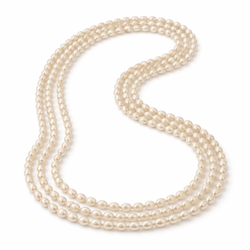 Náhrdelník z bílých říčních perel Abby Long je tvořen pravými bílými říčními perlami s jemným přirozeným leskem. Díky délce přibližně 120 cm se pohodlně navléká přes hlavu a umožňuje variabilní styling.