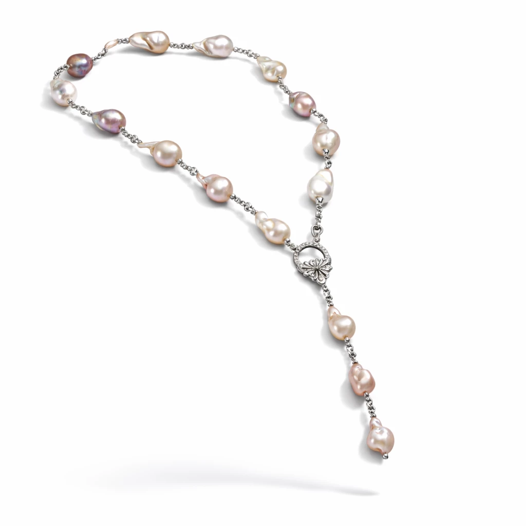 Náhrdelník z chirurgické oceli zdobený pravými říčními perlami, které vynikají svou přirozenou variabilitou a osobitým vzhledem.