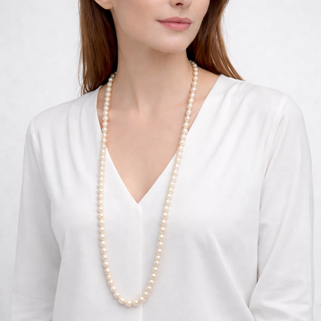 Náhrdelník Abby Long je oslavou přirozené elegance říčních perel a šperkem, který si díky své jemné kráse uchová své kouzlo po mnoho let.