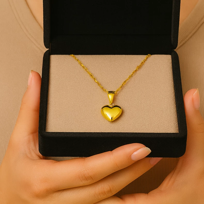 Módní zlacený náhrdelník s motivem srdíčka. Hodí se jak na každodenní nošení, tak i slavnostní příležitosti.
