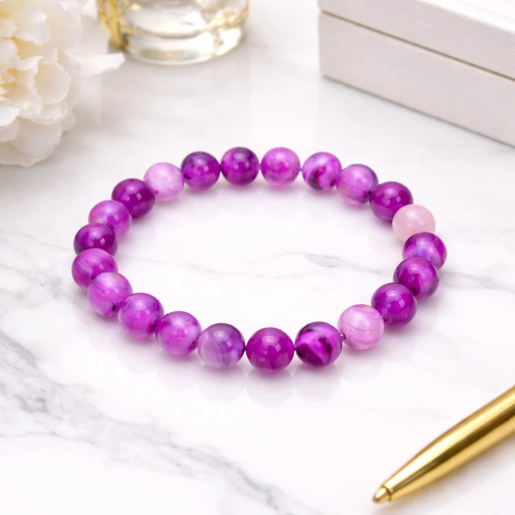Náramek kuličkový achát Jistota je silný a vyvážený šperk, který propojuje energii barev s pocitem stability a klidu.
