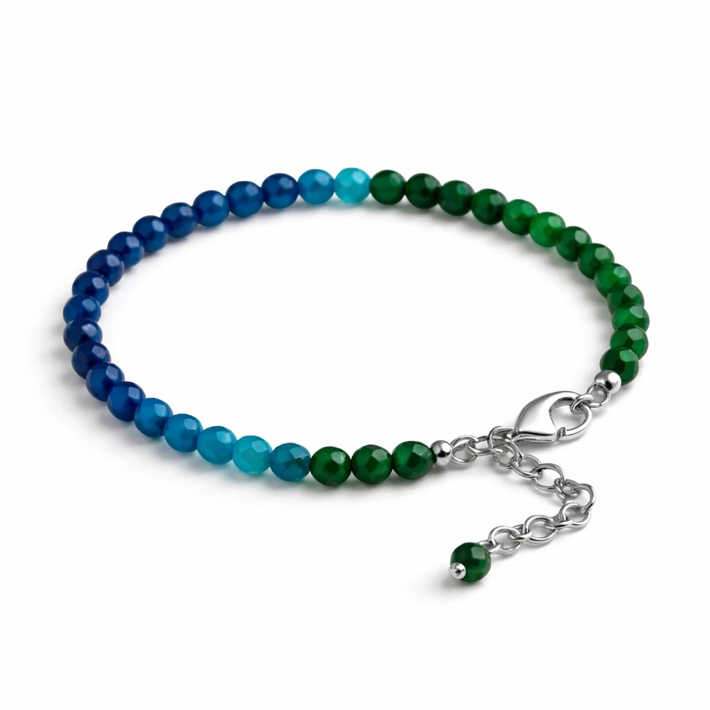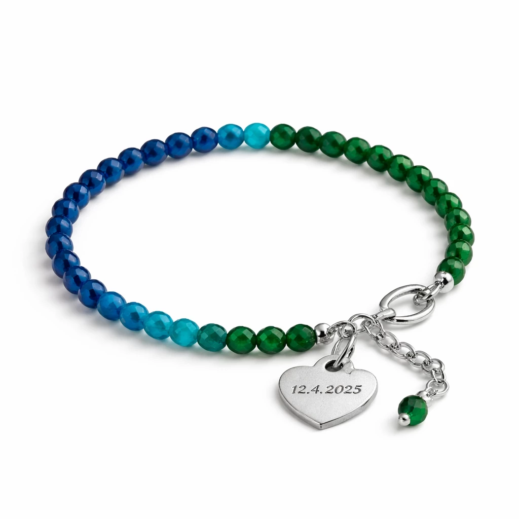 Moderní náramek složený z drobných kuliček minerálů apatitu, smaragdu a safíru ozdobí vaše zápěstí po celý den. Chcete vědět více informací o těchto kamenech? Čtěte dál.
