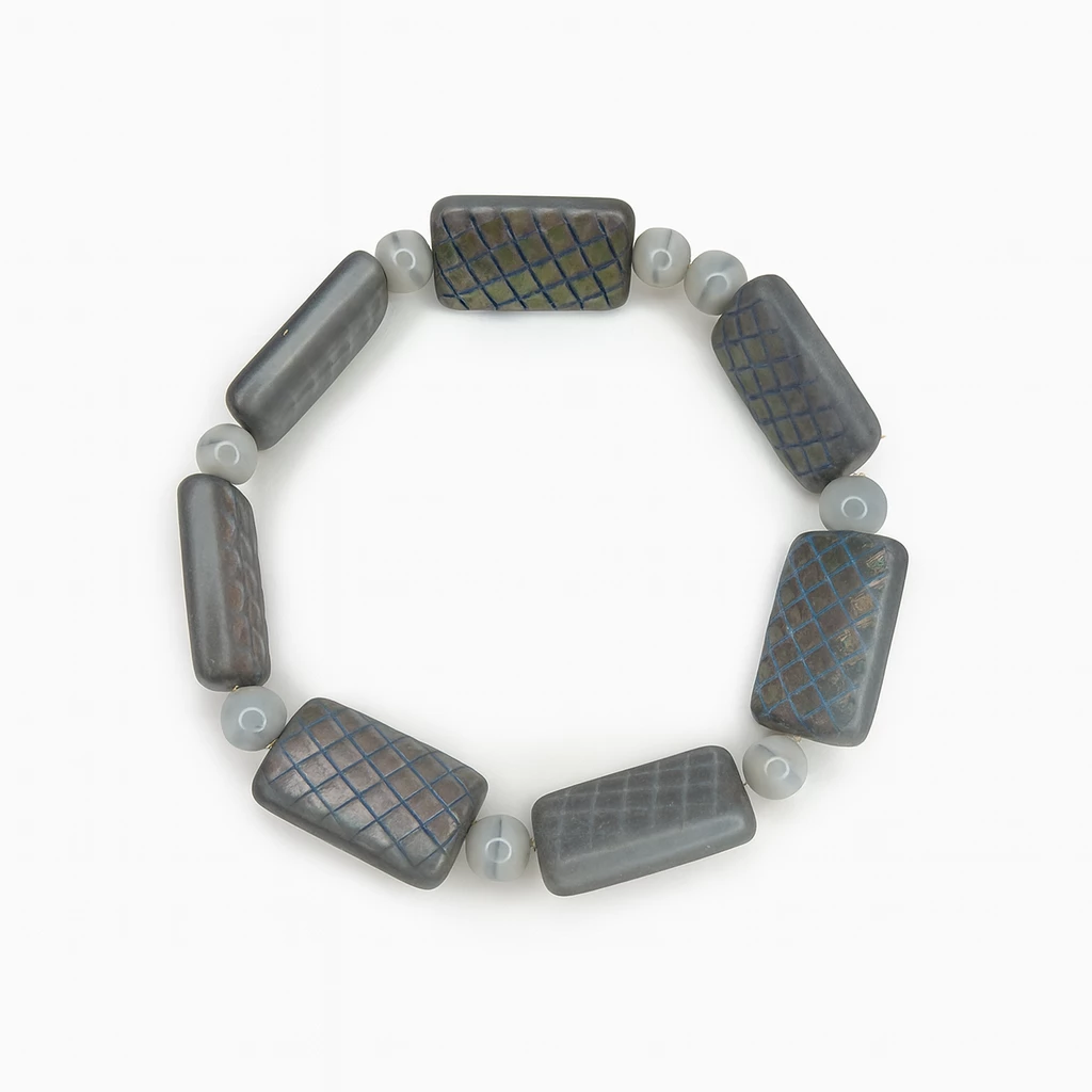 Bižuterní náramek v šedé barvě s obdélníkovým motivem.