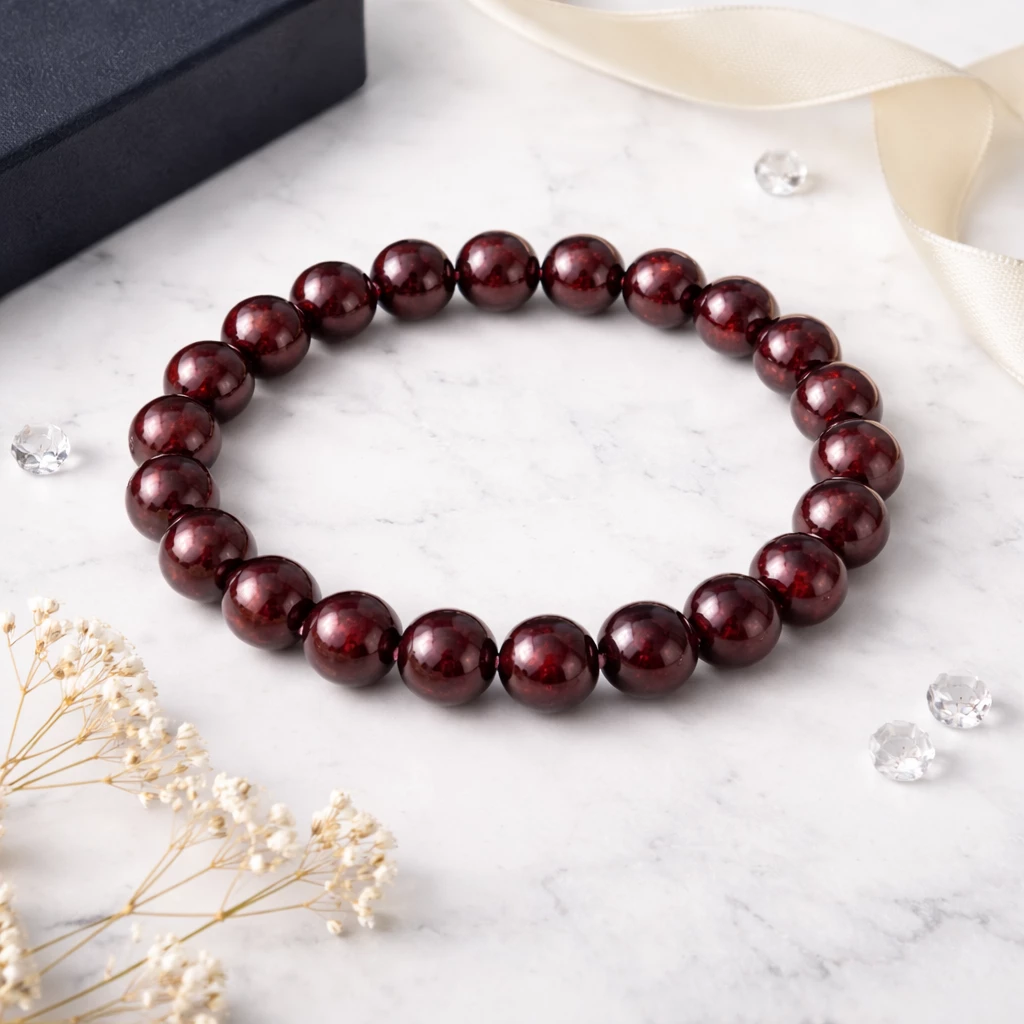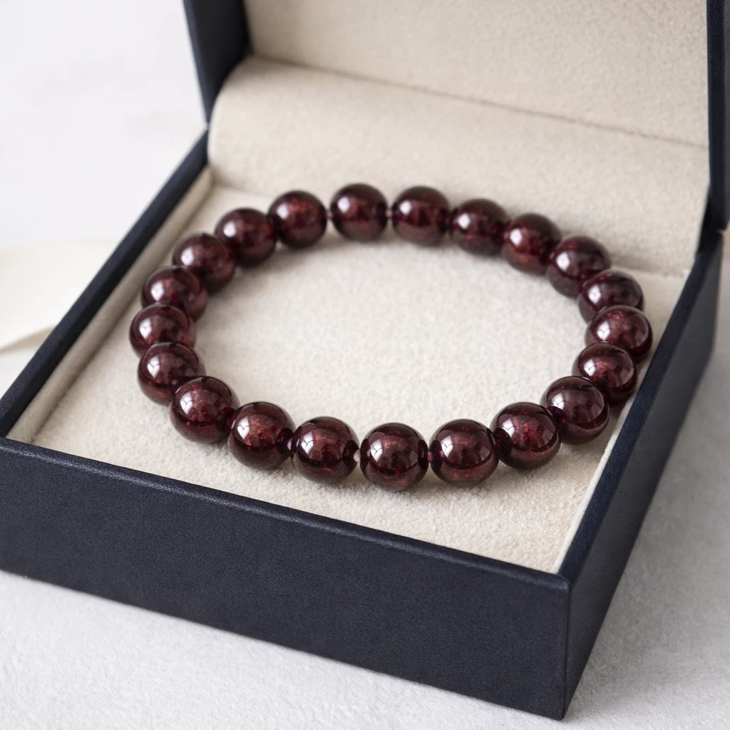 Granátový kuličkový náramek z přírodního granátu je univerzální šperk pro ženy i muže. Nabízíme dvě velikosti kamene: M (cca 8 mm) a L (cca 11 mm) – vyberte si variantu, která vám sedí nejlépe.