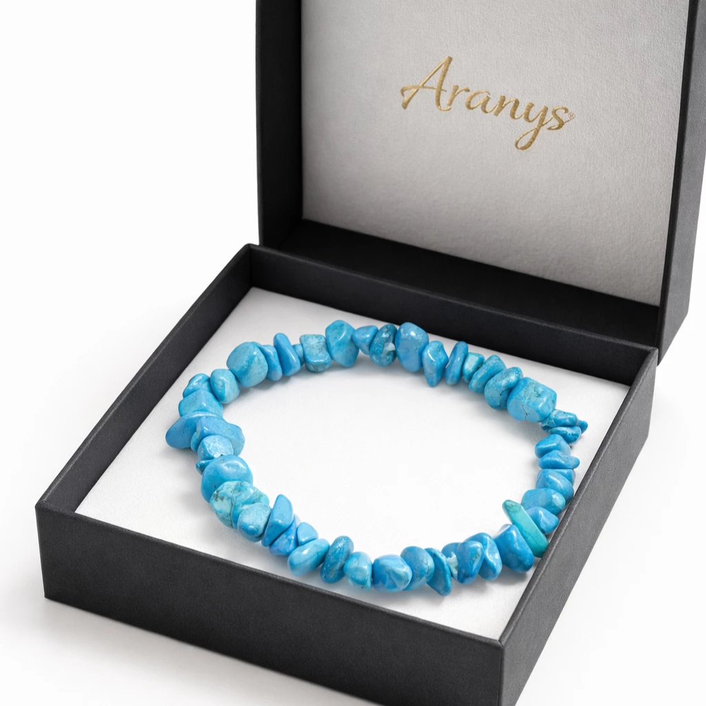 Náramek sekaný howlit modrý Nadhled je jemným symbolem klidné mysli a schopnosti vidět věci s větší lehkostí a perspektivou.