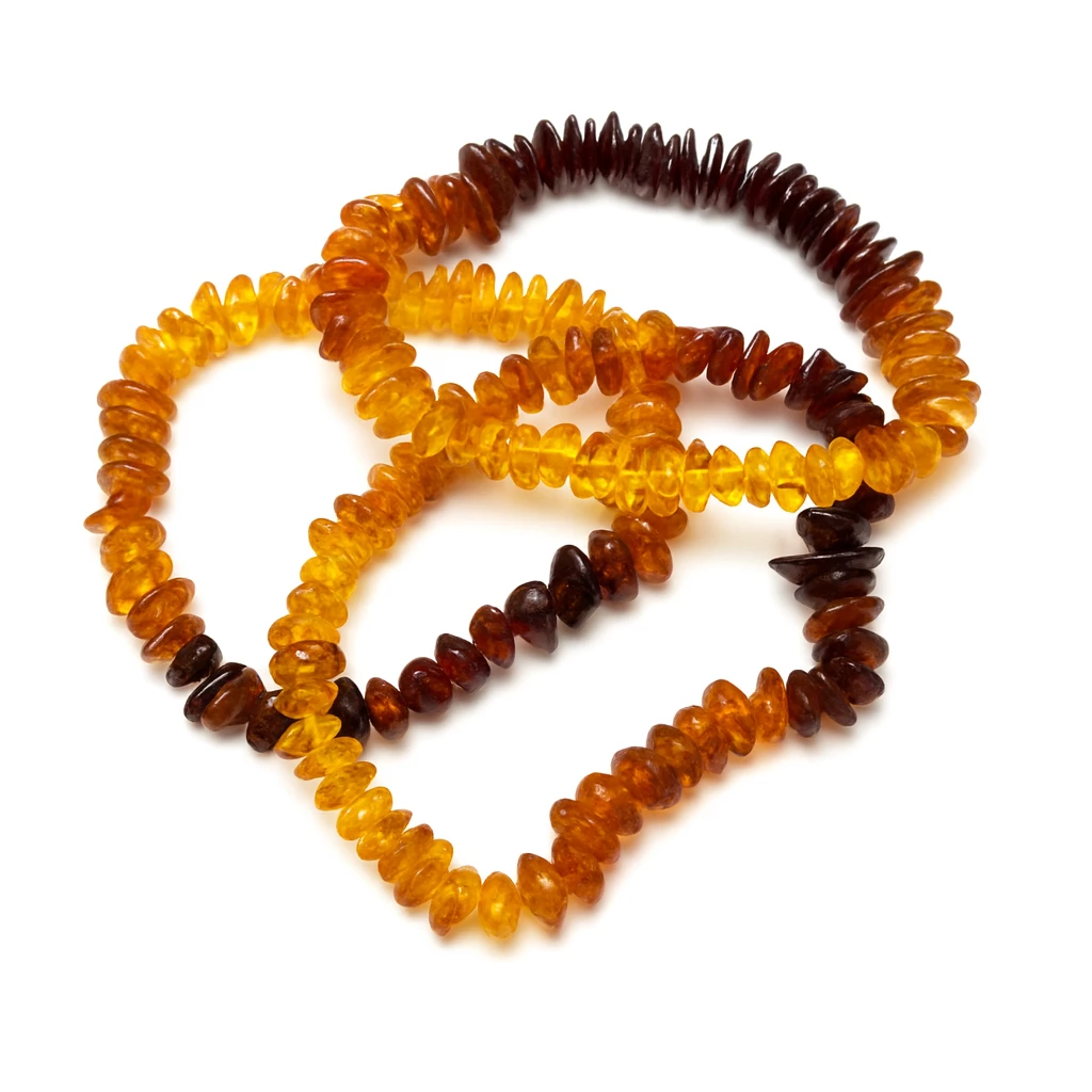 Náramek tvořený sekanými ohlazenými kousky přírodního multicolor jantaru si zamilujete.