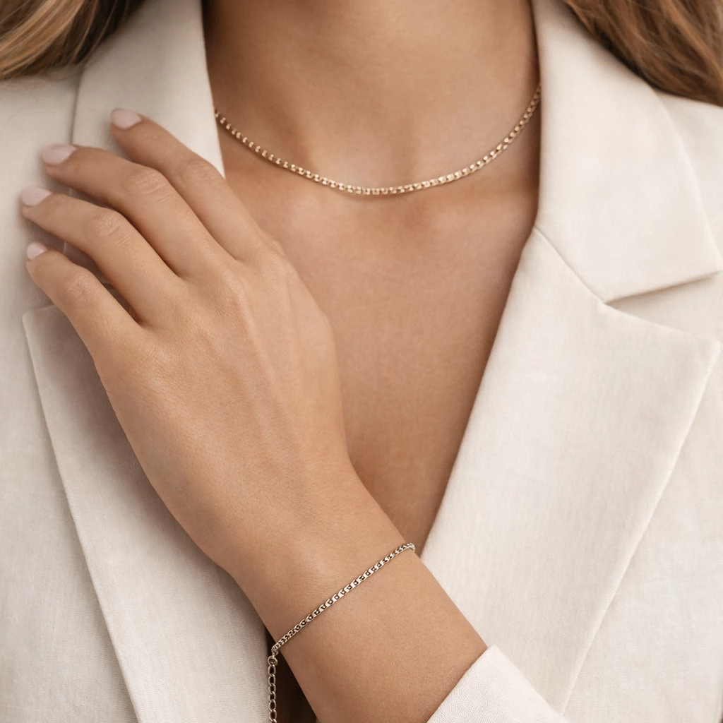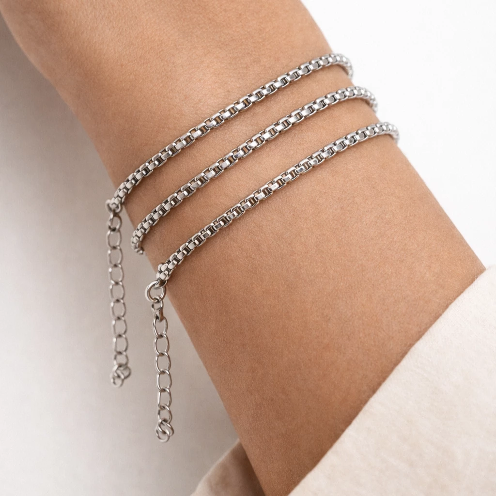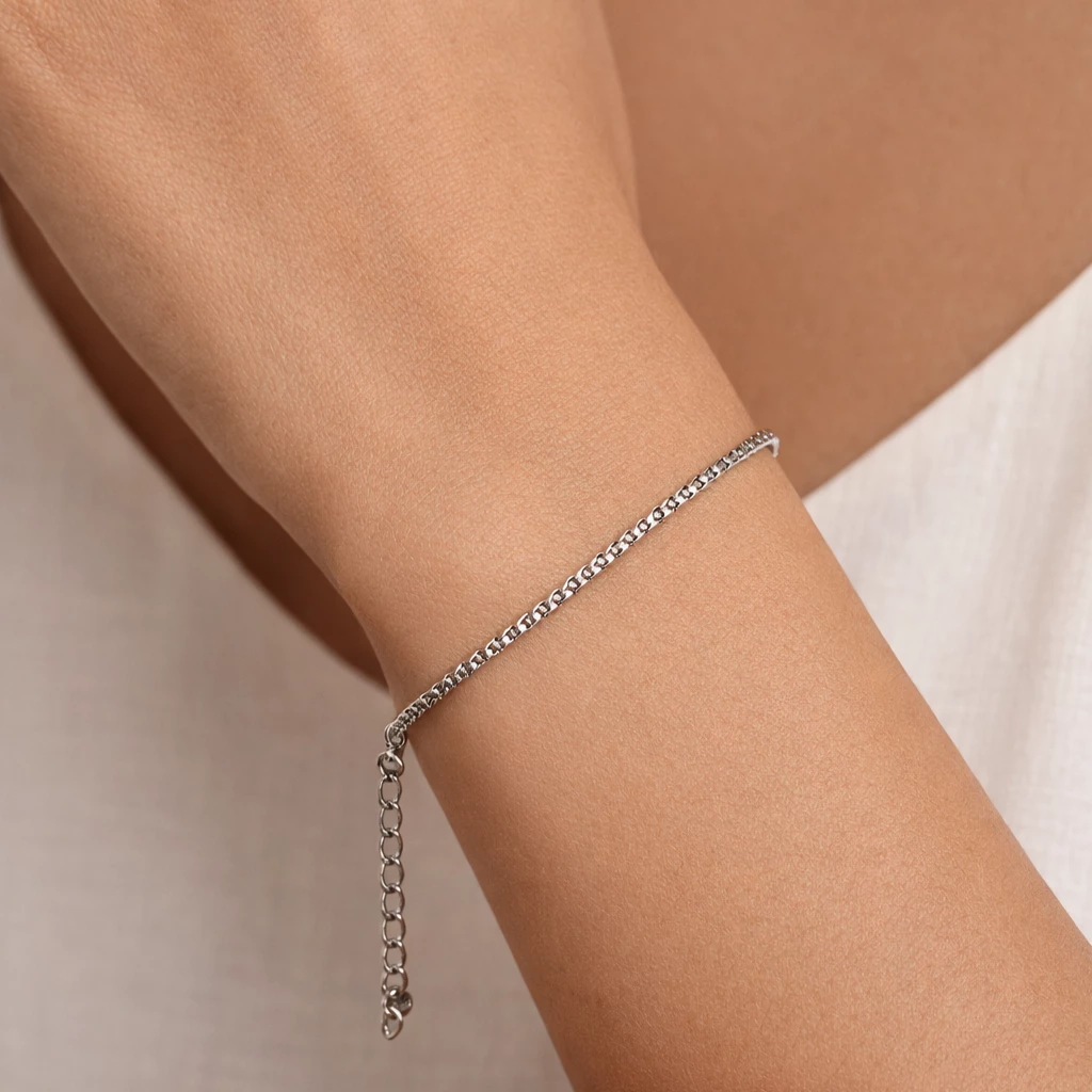 Minimalistický ocelový náramek s jemným článkovým řetízkem. Nadčasový doplněk, který se snadno kombinuje a decentně doplní každý outfit.