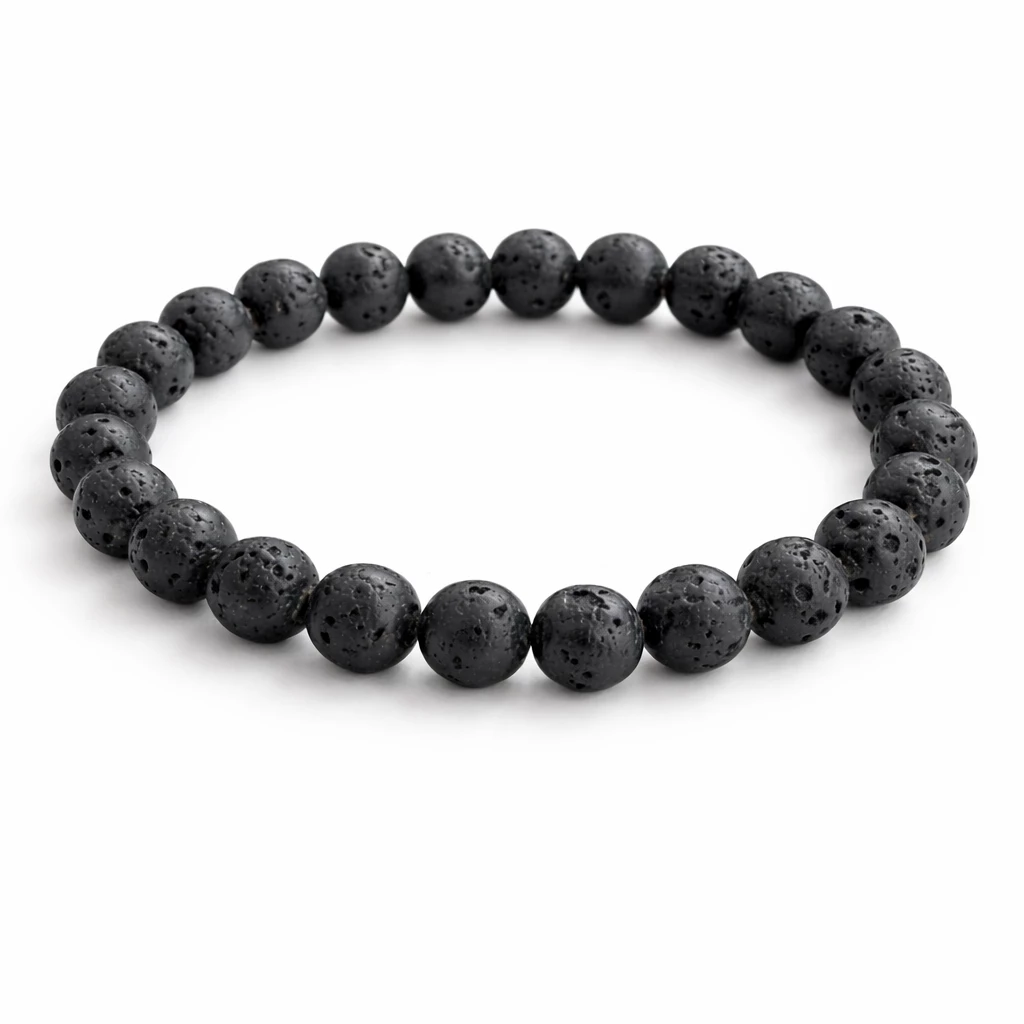 Minimalistický design s osobním významem. Lávový náramek Lava je vyroben z přírodních lávových kamenů o průměru 8 mm a doplněn o elegantní kovový plíšek, který náramku dodává jemný, ale výrazný detail.