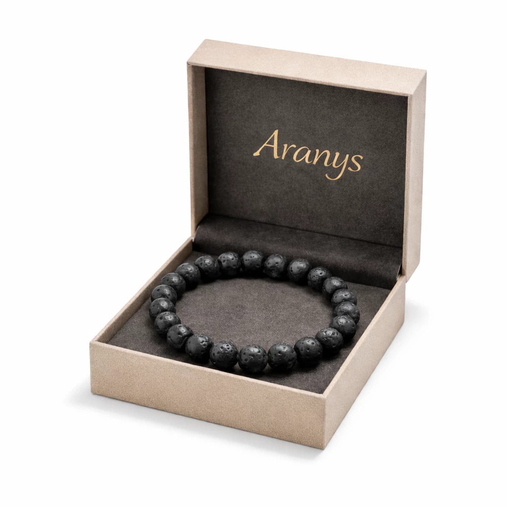 Matná struktura lávových kamenů působí elegantně a přirozeně. Náramek je navržen tak, aby se snadno kombinoval s dalšími šperky Aranys i s hodinkami.
