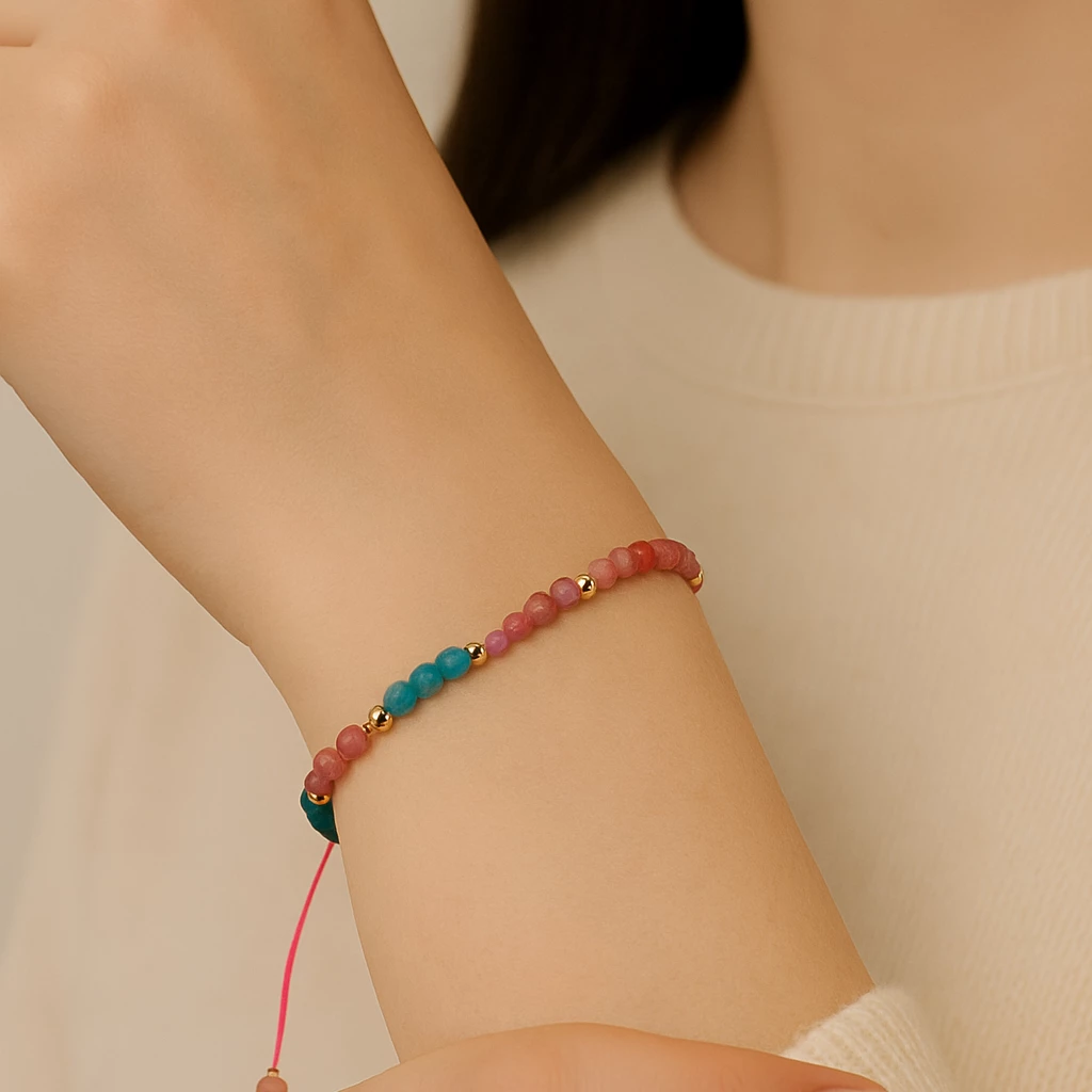 Dámský náramek z perliček Morganitu v pastelových barvičkách, jako skvělý doplněk.
