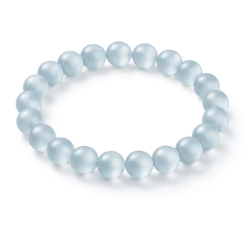 Krásný náramek z kuliček Selenitu v průhledné bílé barvě s šedavými odlesky je něžným doplňkem.