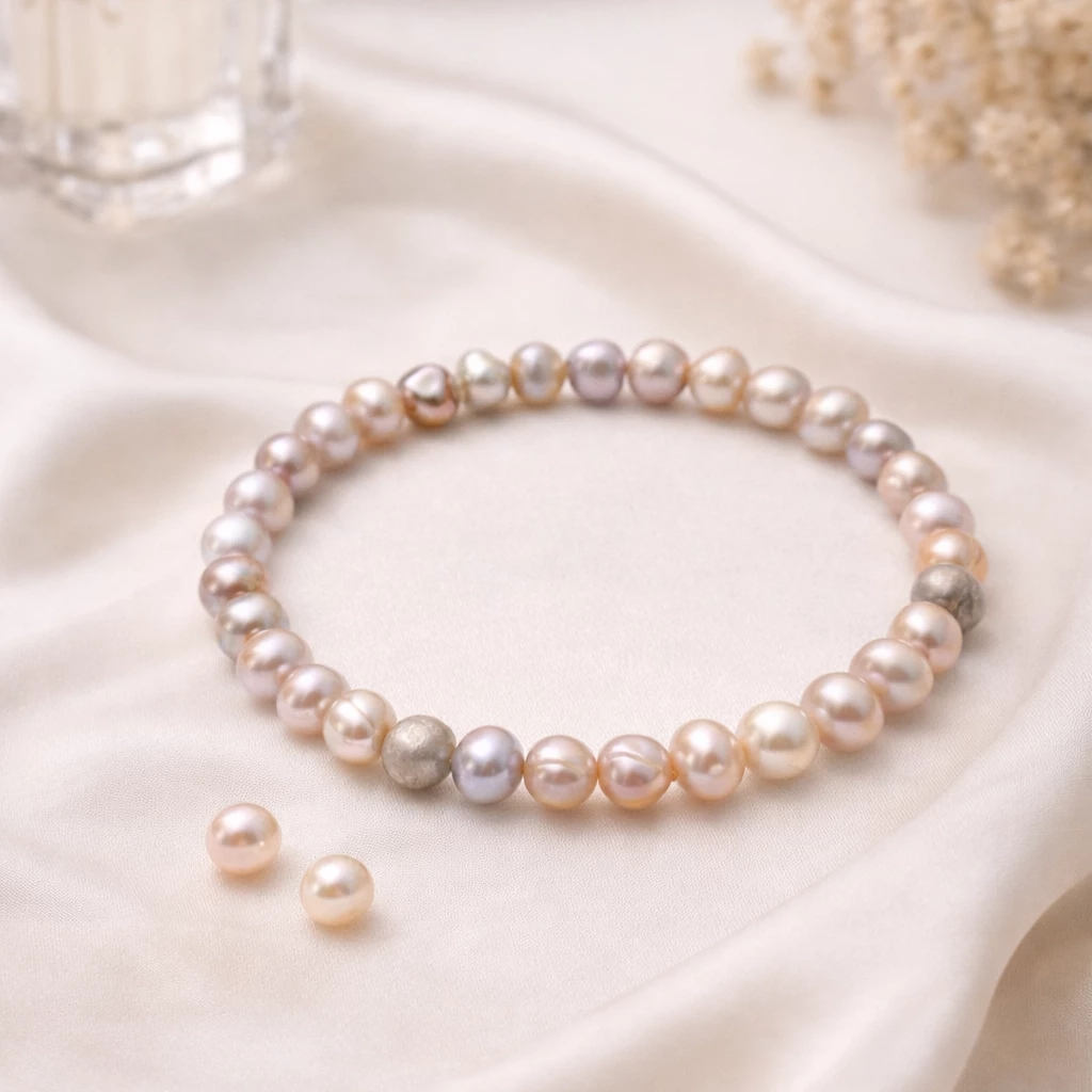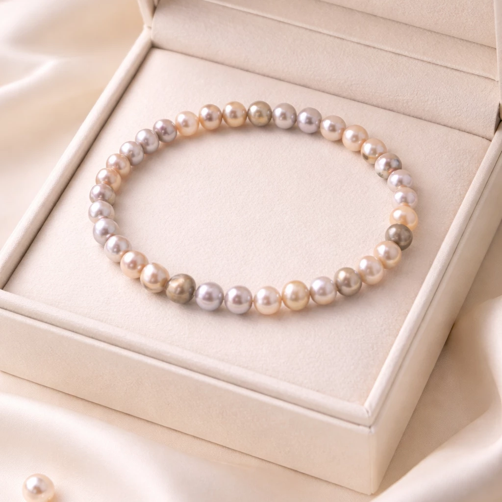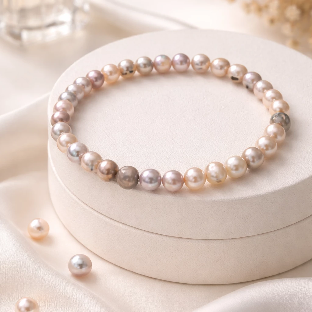 Náramek z růžových říčních perel Rosé je tvořen pravými říčními perlami v jemných růžových tónech, které působí něžně, čistě a nadčasově. Díky AAA kvalitě perel vyniká jejich krásný lesk, hladký povrch a celkově luxusní vzhled.