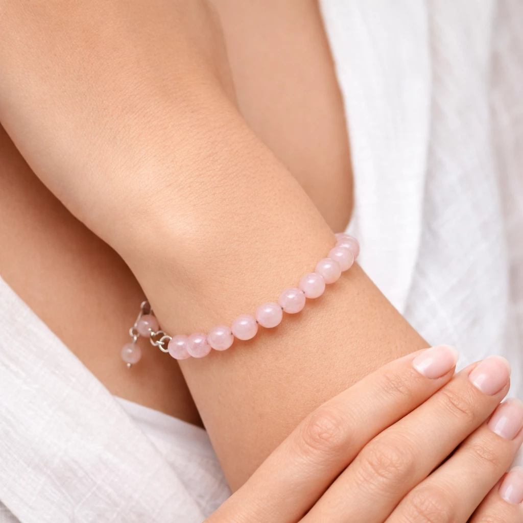 Jemné růžové odstíny růženínu symbolizují lásku, něhu a vnitřní harmonii. Díky svému čistému designu je náramek ideálním doplňkem pro každodenní nošení i slavnostní příležitosti.