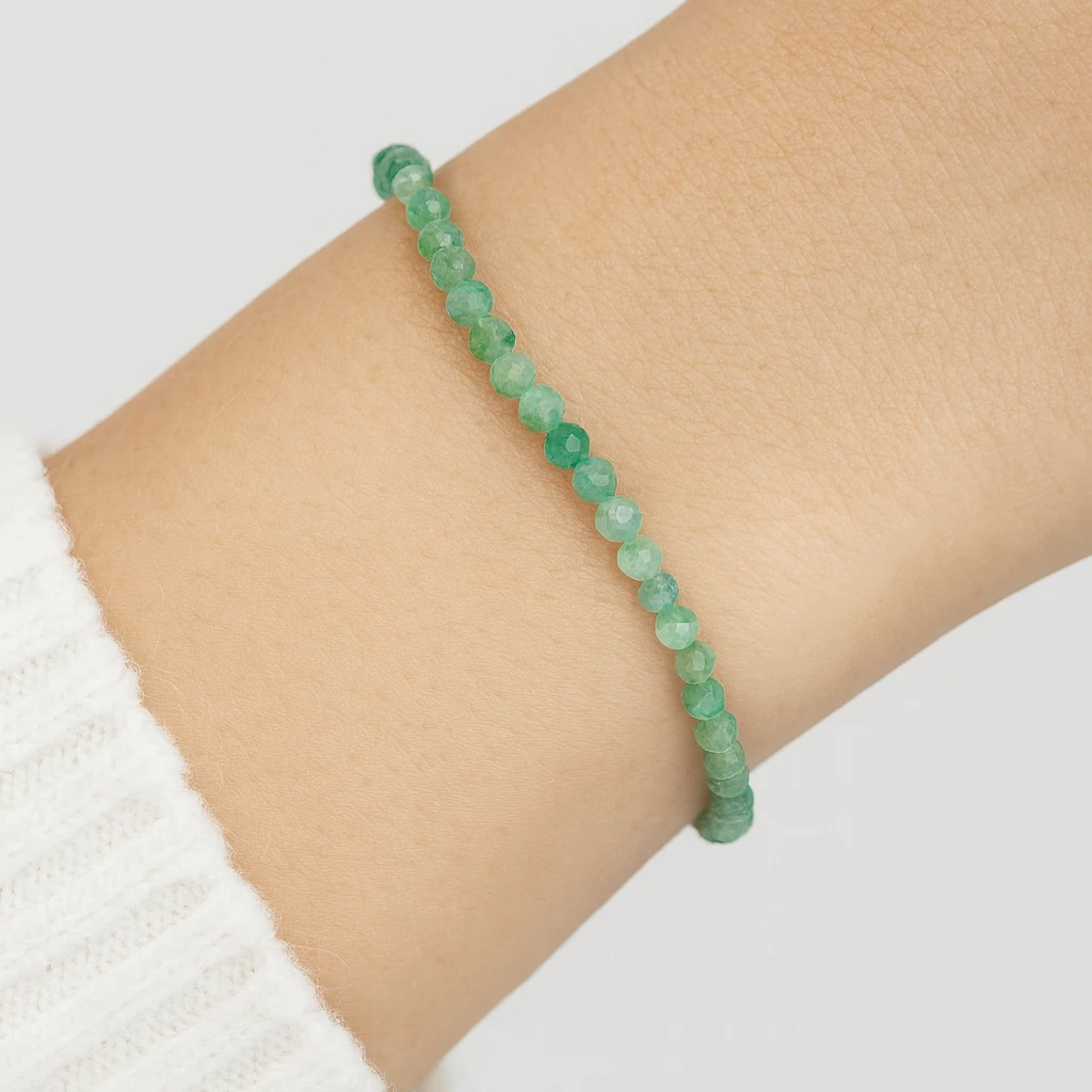 Náramek ze sekaných kousků syntetického smaragdu se bude hodit pro váš každý den k doladění každého stylu oblečení.