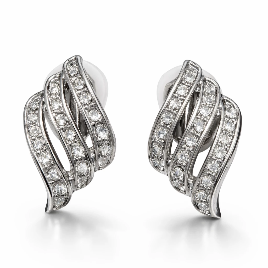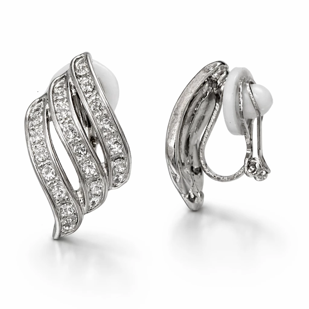 Klipsové náušnice štrasové Mona zaujmou svým elegantním křivkovým designem a bohatým osazením třpytivými kamínky. Provedení z kvalitní bižuterie dodává šperku nadčasový vzhled a klipsové zapínání umožňuje pohodlné nošení i bez propíchnutých uší.